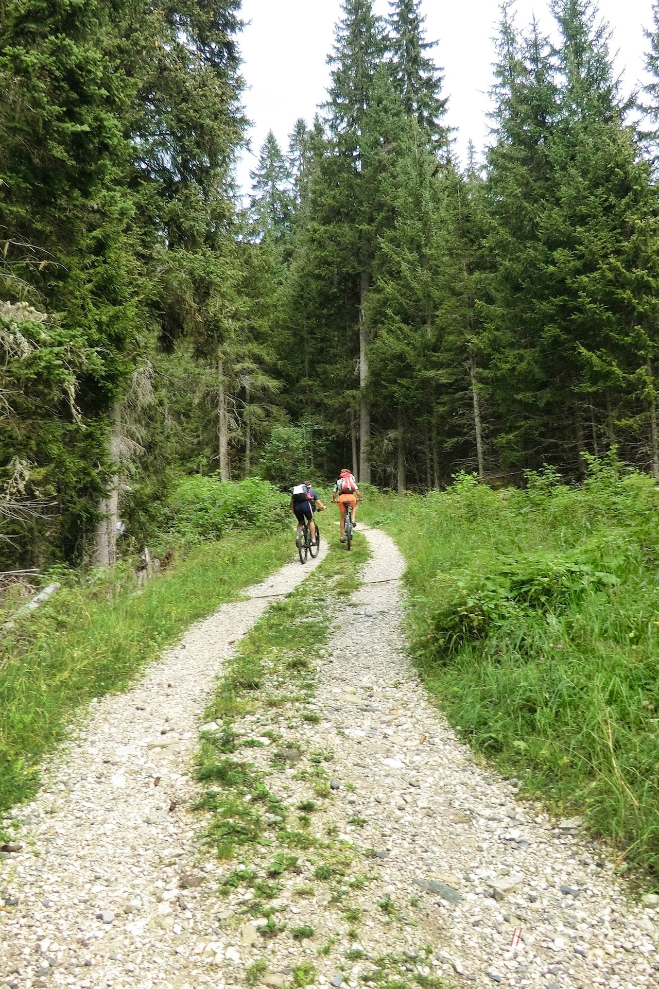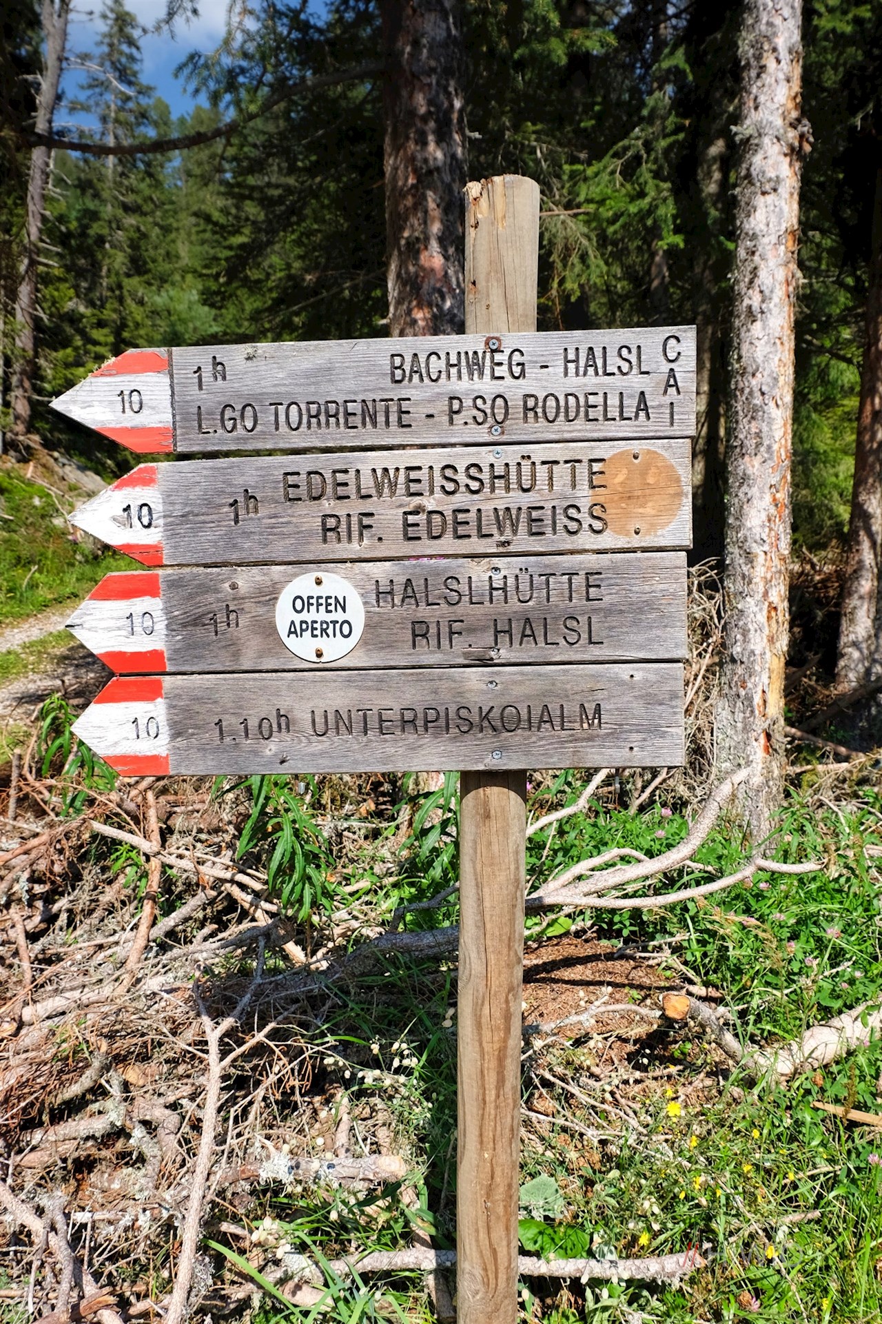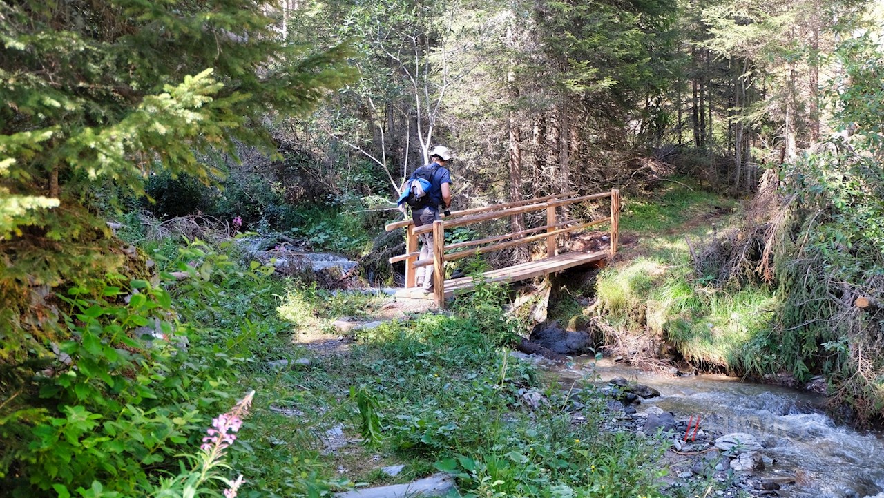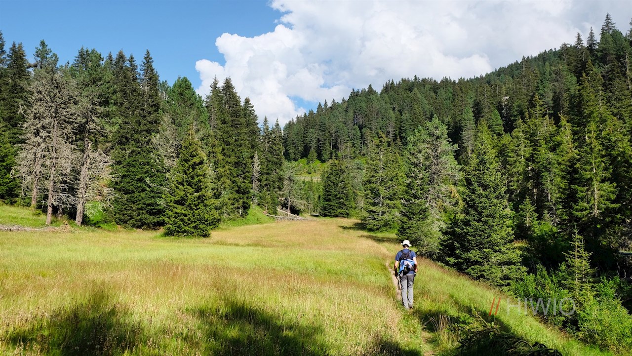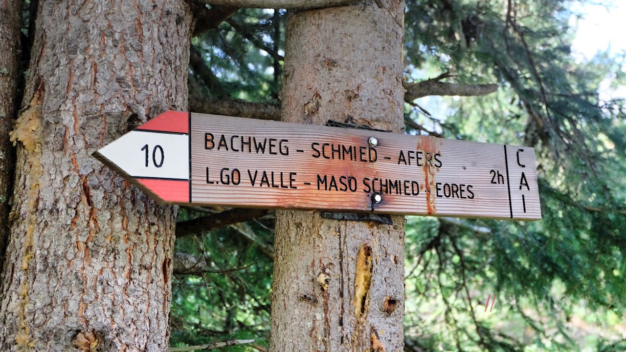 Am Parkplatz zweigt der mit der Nr. 10 ausgeschilderte Bachweg zur Halslhütte ab. Er führt entlang des glucksenden Baches durch den stillen Nadelwald, der hie und da schöne Ausblicke auf die Aferer Geisler freigibt. Am Waldsaum dehnen sich idyllische Almwiesen aus, in denen im Sommer eine bunte Vielfalt zarter Bergblumen gedeiht.