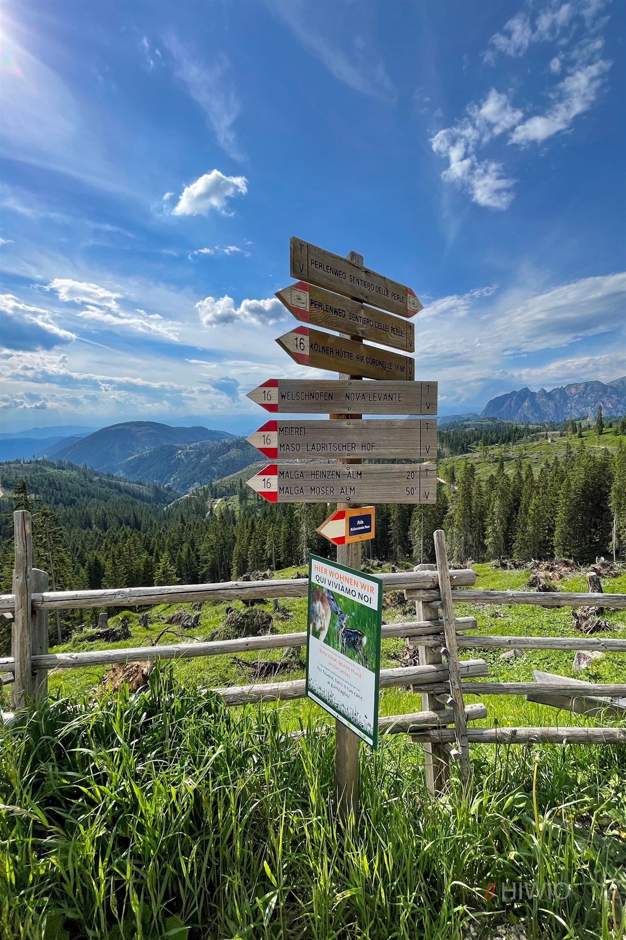 Alternativ zur hier vorgeschlagenen Wanderroute kann man auch von der beliebten, an der Bergstation der Kabinenbahn Welschnofen gelegenen Frommer Alm, vom Karersee, von Welschnofen oder vom Karerpass zur Heinzenalm wandern.