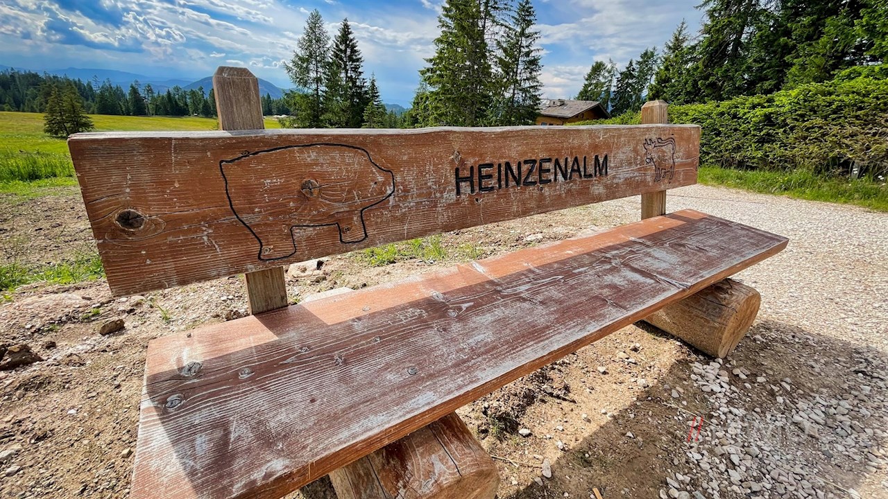 Von der Nigerstraße zweigt der breite Wanderweg Nr. 16 zur malerischen Heinzenalm ab. Er schlängelt sich im sanften Abstieg durch malerische Blumenwiesen, die sich im Frühsommer in ein leuchtendes Farbenmeer verwandeln.