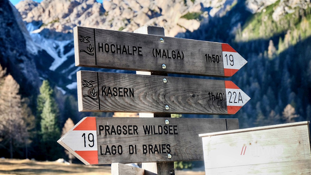 Die ausgedehnte Wanderung zu den Hochalmen nimmt am Hotel Pragser Wildsee ihren Anfang, nahe dem sich zahlreiche gebührenpflichtige Parkmöglichkeiten finden.