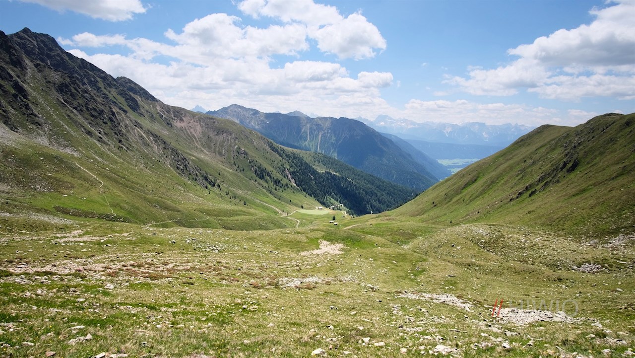 Der Beschilderung Nr. 12 in Richtung Uwaldalm folgend, gelangt man alsbald auf einen breiten Wanderweg, der sich im angenehmen Anstieg durch einen lichten Nadelwald schlängelt. Unterwegs eröffnen sich immer wieder verträumte Ausblicke ins langgezogene Gsiesertal, auf die Villgratner Berge und die gegenüberliegenden Pragser Dolomiten.