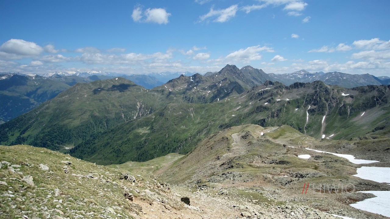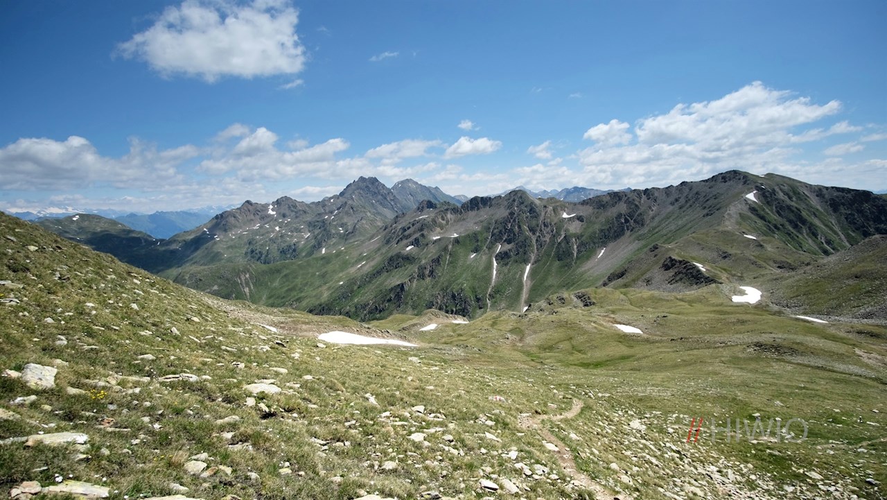 Der Rückweg von der Hochkreuzspitze erfolgt zunächst auf dem bereits vertrauten Hinweg. Bei der Weggabelung unterhalb der Pfoiseen schlagen wir diesmal aber den Weg Nr. 12 in Richtung Pfoi (Alm) / Talschluss ein.