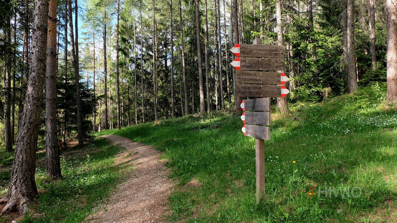 Nacheinander den Wegnummern 8A, 8 und 2 folgend, gelangt man schließlich zum Völser Weiher und mithin zum Ausgangspunkt zurück.