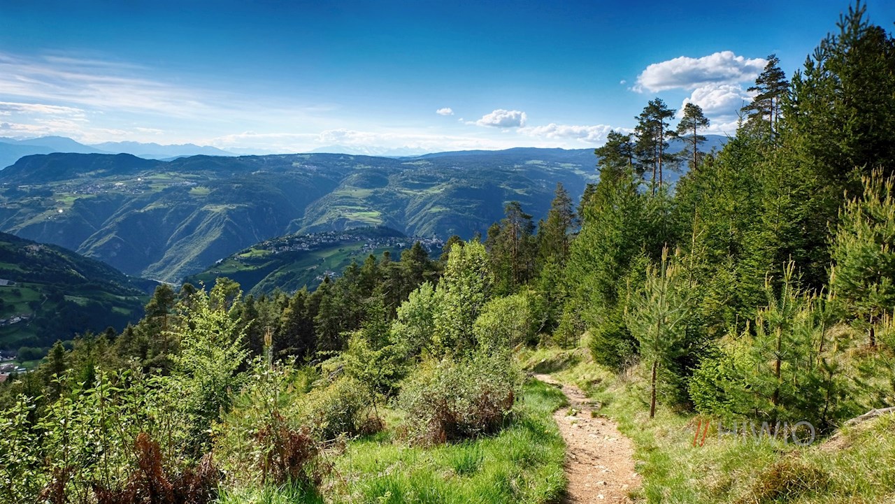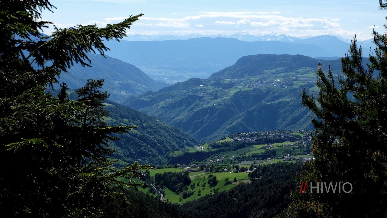 Von der einladenden Almhütte führt der Steig Nr. 3 in einen friedvollen Wald hinab, der immer wieder Blicke auf die imposante Hammerwand, die gegenüberliegende Bergwelt, Völs und seine Umgebung freigibt.