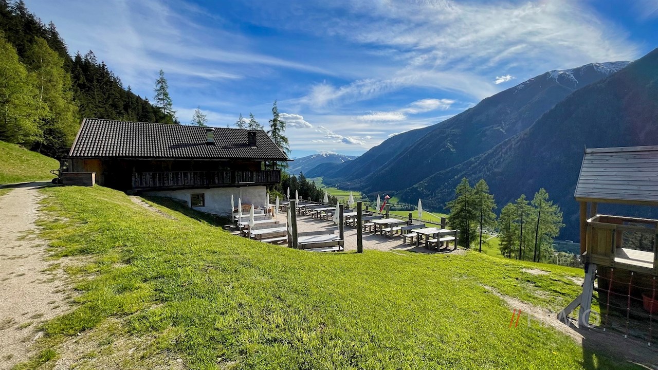 Die Hofstatt Alm in Antholz Niedertal ist bekannt für die verführerisch duftenden Gerichte, die gemütliche Atmosphäre und den schönen Panoramablick, der sich auf der einladenden Aussichtsterrasse entfaltet. Dank des sanften und kurzen Aufstiegsweges ist sie ein ideales Wanderziel für Familien mit Kindern.