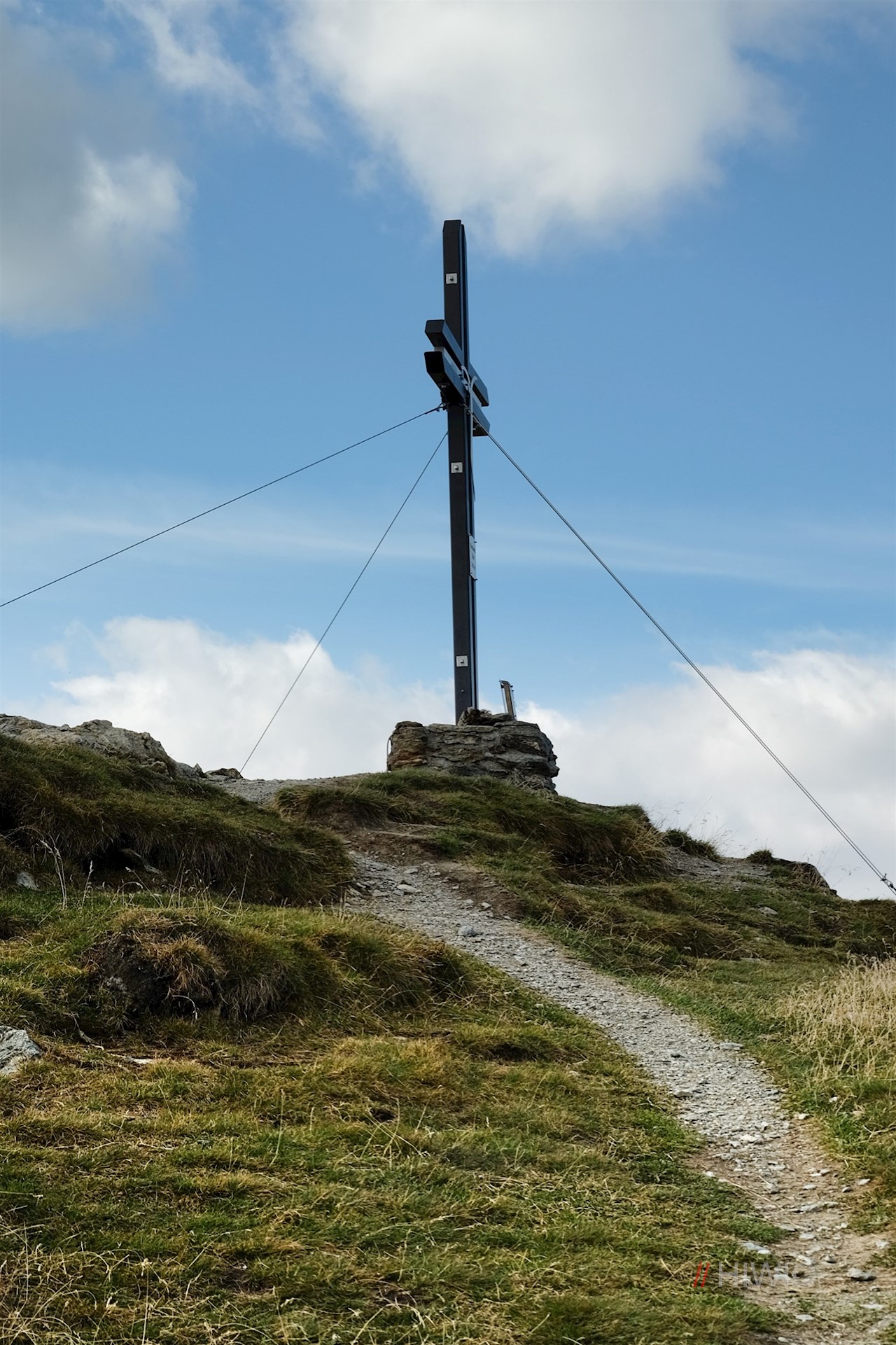 Das elegante Gipfelkreuz des Hornischegg wurde vom Sillianer Kunstschlosser Florian Kofler gefertigt. Es zeigt auf der einen Seite den ans Kreuz geschlagenen Jesus, während auf der anderen Seite zwei Hände im Friedensgruß vereint sind. Dieser soll zugleich Mahnung und Erinnerung an den Ersten Weltkrieg sein, dessen Front sich entlang des Karnischen Kammes zog. Das suggestive Gipfelkreuz fertigte der junge Sillianer übrigens als Gesellenstück an.