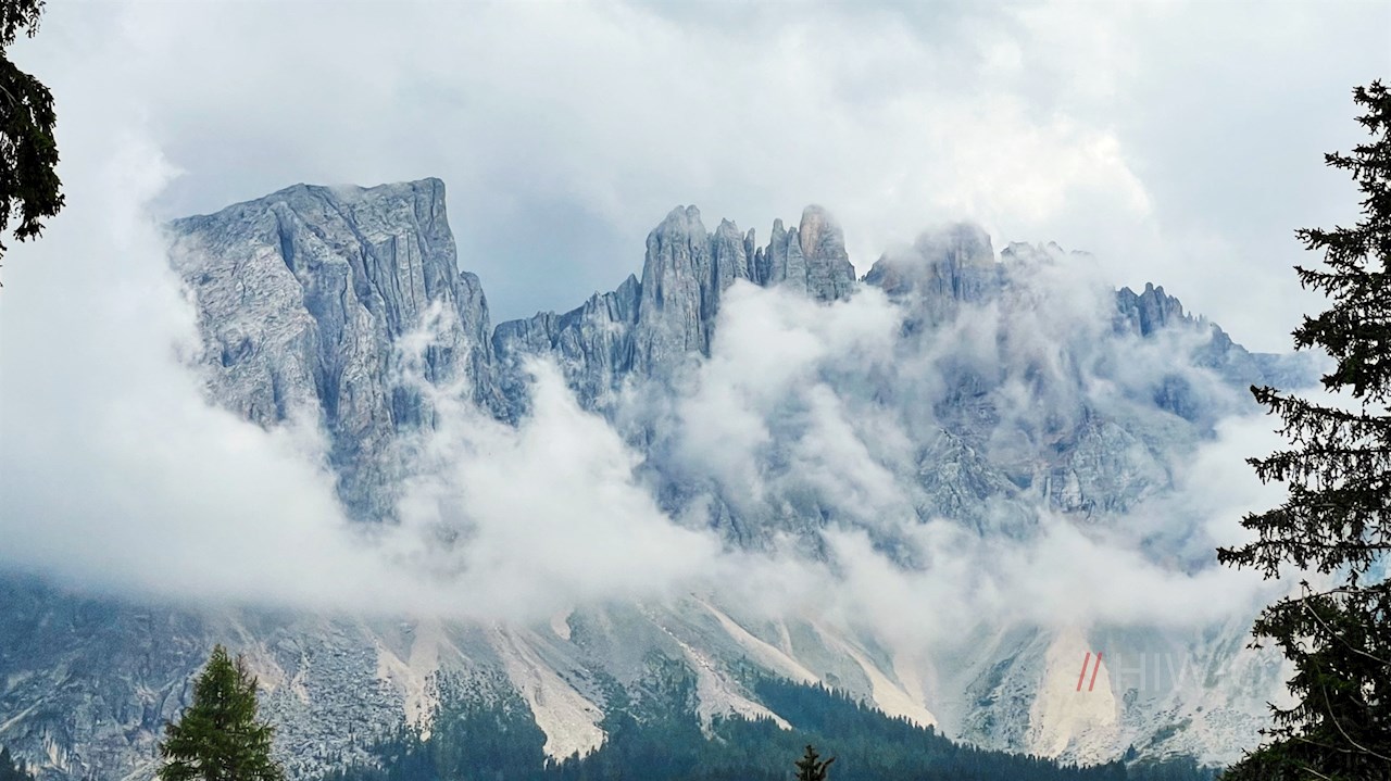 Ein besonders schöner Blick auf die zerklüfteten Felswände des Latemar öffnet sich übrigens auf der Panoramaplattform am Nordufer des Karersees, auf der Infotafeln interessante Einblicke in die Umgebung gewähren.