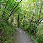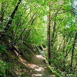 Nachdem man die letzten Häuser hinter sich gelassen hat, zweigt am linken Straßenrand die Karlspromenade ab. Sie führt im sanften Auf und Ab durch einen schattenverheißenden, lichten Laubwald, in dem im Frühling zahlreiche Leberblümchen und Huflattiche gedeihen.