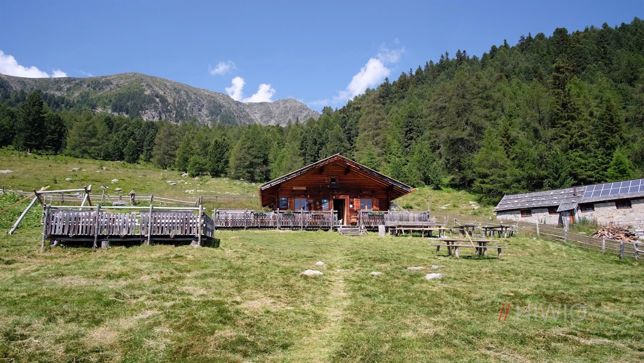 Stets der Wegnummer 2 folgend, führt der anfangs breite Wanderweg zunächst im angenehmen Anstieg durch den Wald. Wenig später zweigt am rechten Wegesrand ein Waldpfad ab, der recht steil zur Zirmaitalm ansteigt. Nach etwa einer Stunde steten Wanderns lädt sie inmitten einer aussichtsreichen Lichtung zur genüsslichen Zwischenrast.