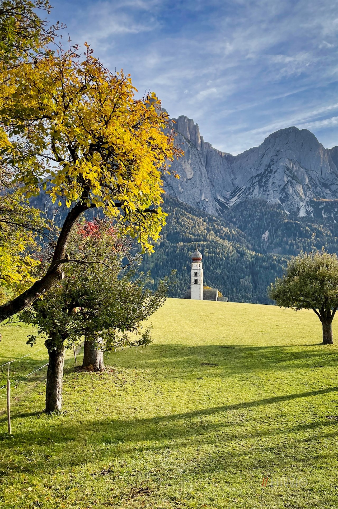 Von Kastelruth führt eine schöne Wanderung zur St. Valentin Kirche. Das kleine Kirchlein mit Blick auf Seis und den majestätischen Schlern zählt zu Südtirols bekanntesten Fotomotiven.