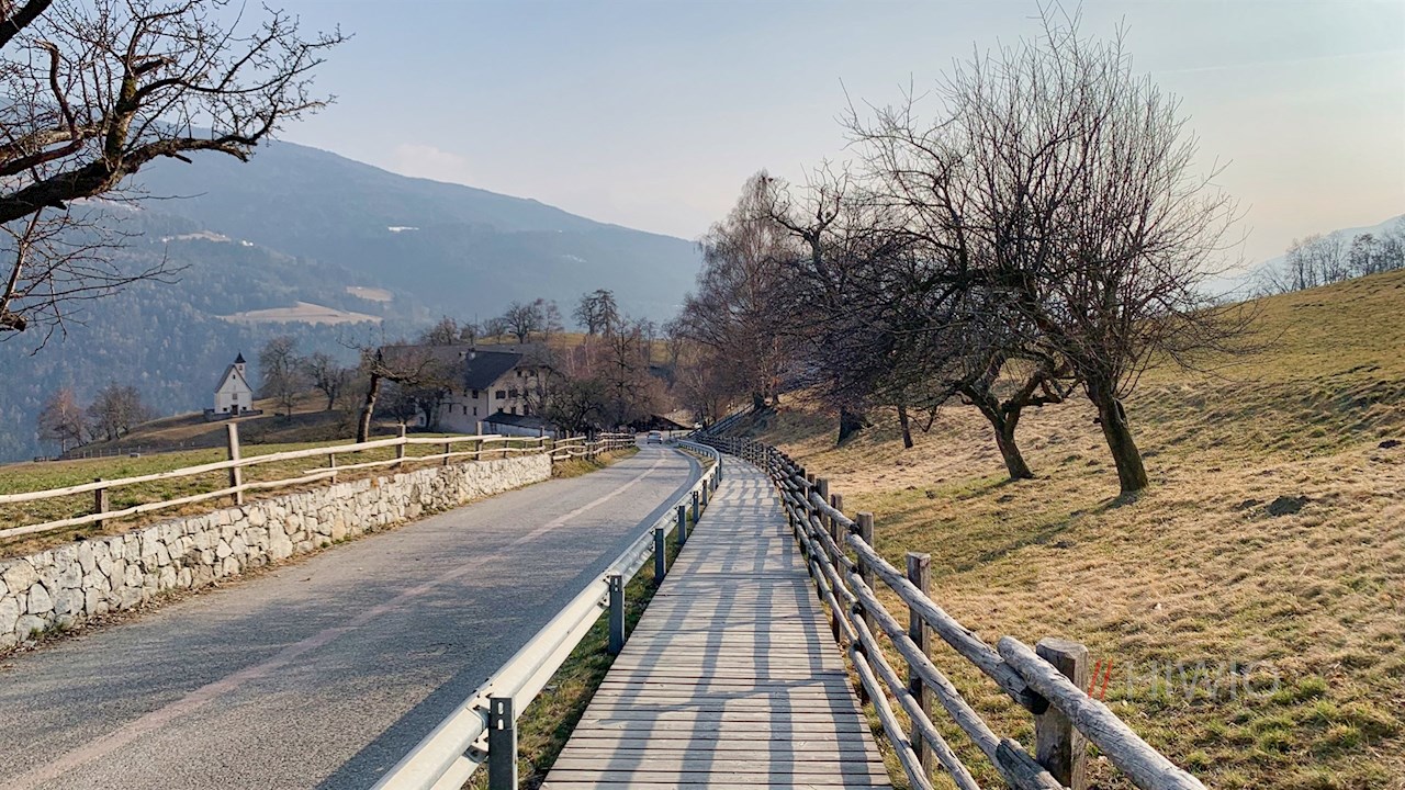Nach weiteren 20 Minuten erreicht man dessen Hügelkirche, die dem hl. Valentin geweiht ist. Neben dem Gotteshaus lädt das Gasthaus St. Valentin zur Einkehr.