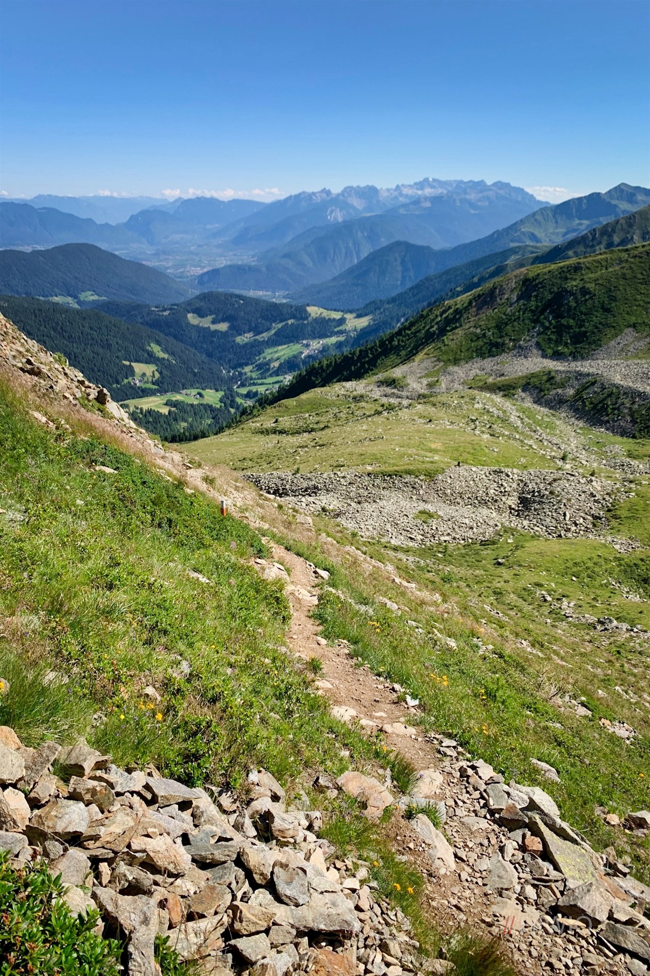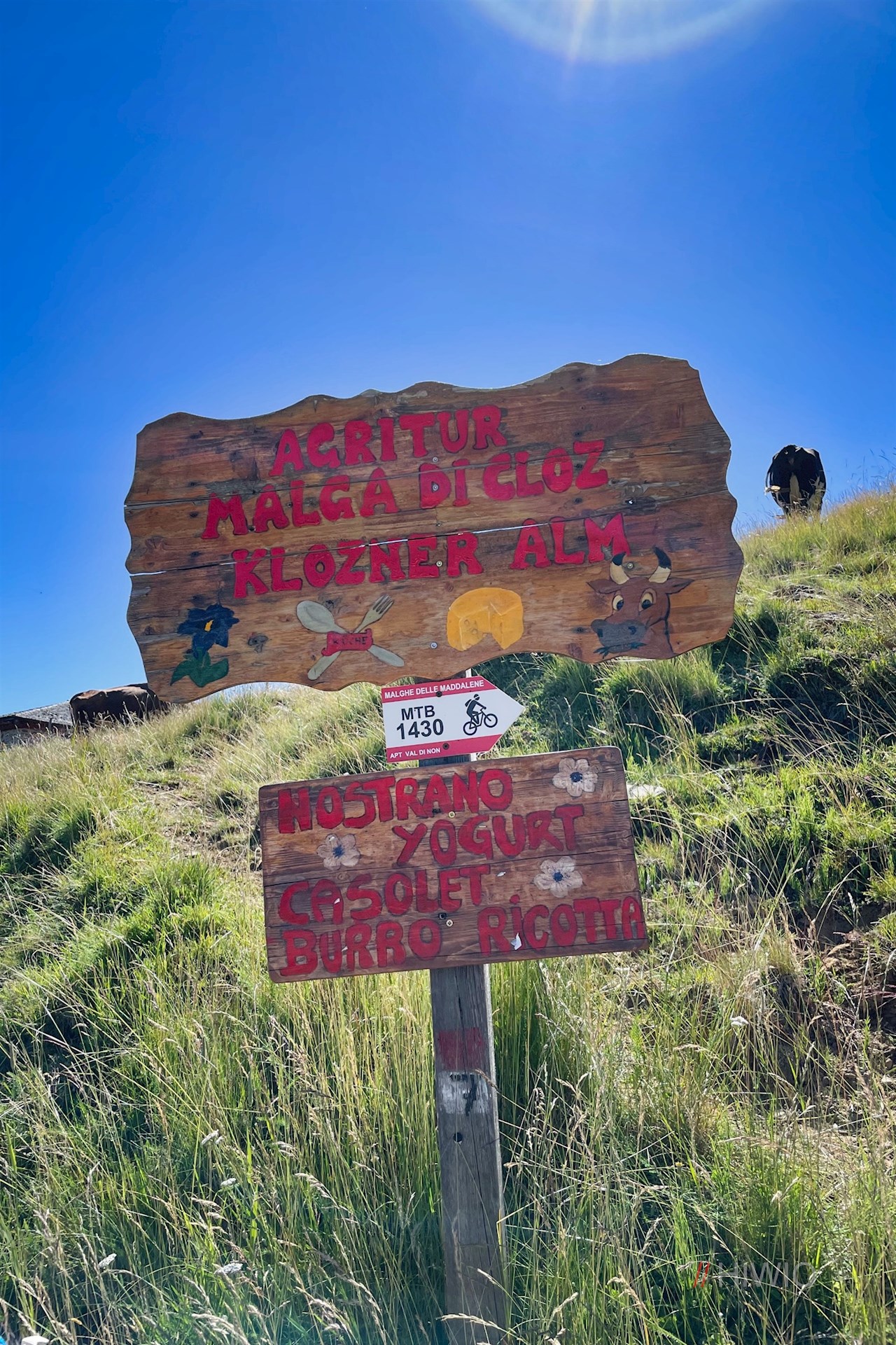 Der Abstieg vom Kornigl erfolgt am schnellsten auf dem bereits vertrauten Anstiegsweg. Dabei sollte man sich die Einkehr in die Malga di Cloz oder die benachbarte Malga Revò nicht entgehen lassen.