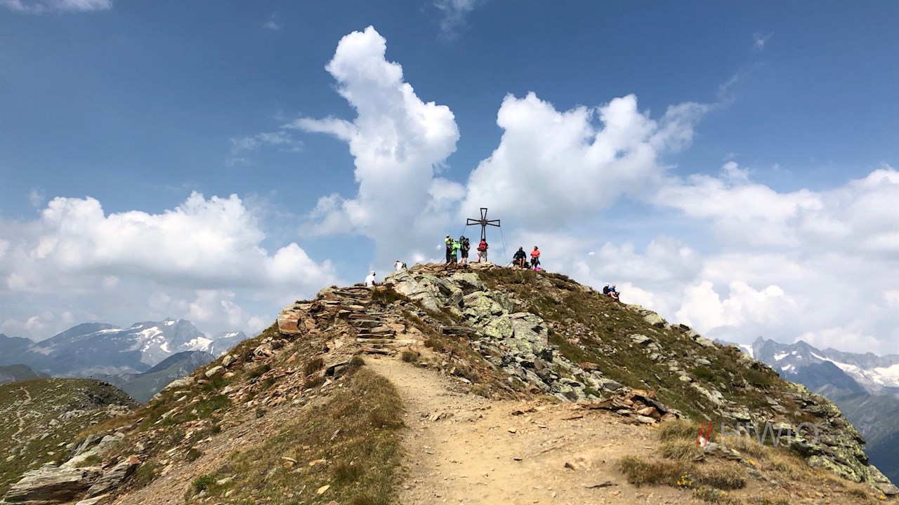 Nach dem Klettersteig folgt man dem Weg 27 Speikboden und erreicht dann das Gipfelkreuz.
