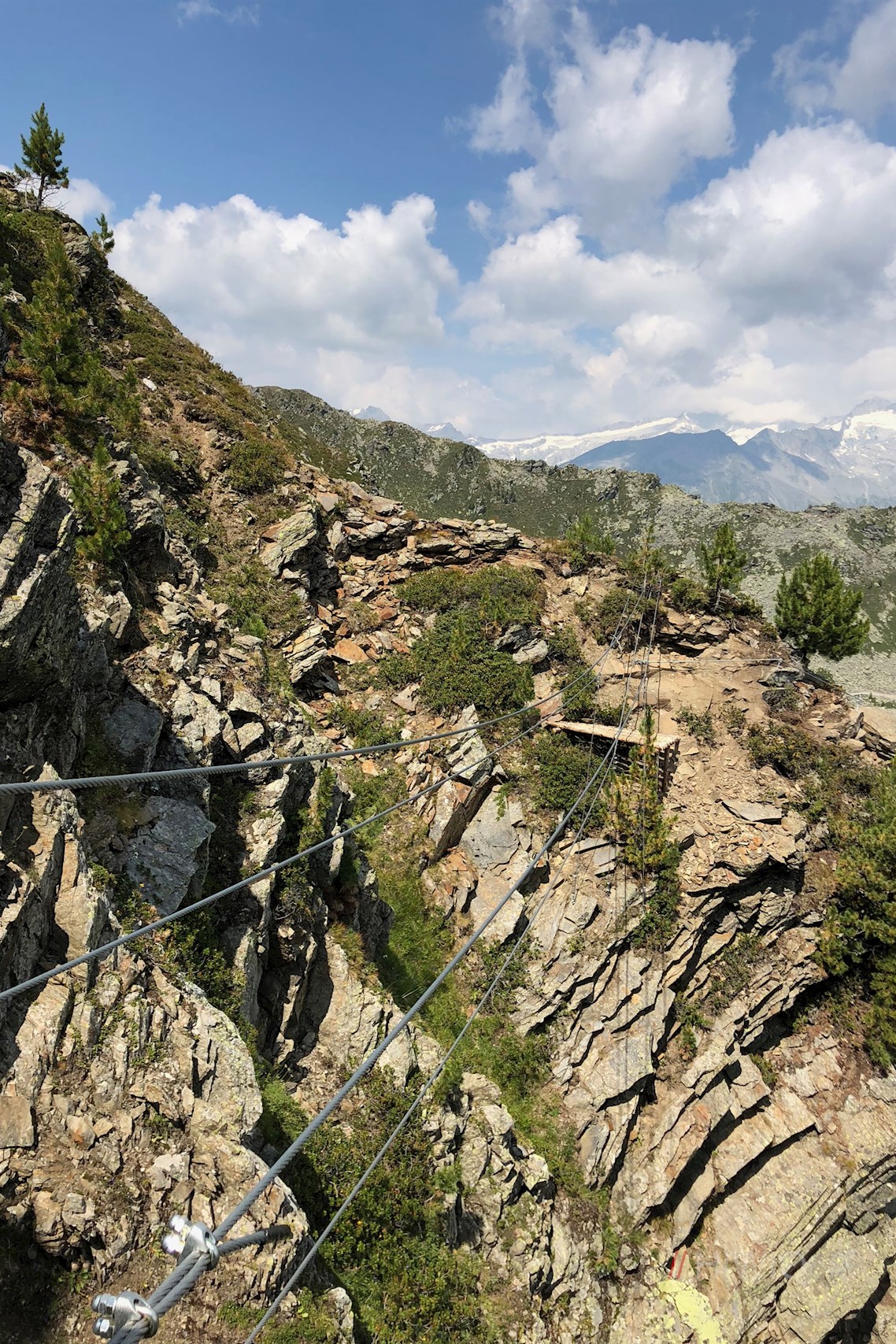 Die Abschnitte sechs und sieben gehen normal hinauf; der achte Abschnitt wird wiederum durch Stifttreppen unterstützt und wird dann erdiger, bis man den Klettersteig beendet hat.