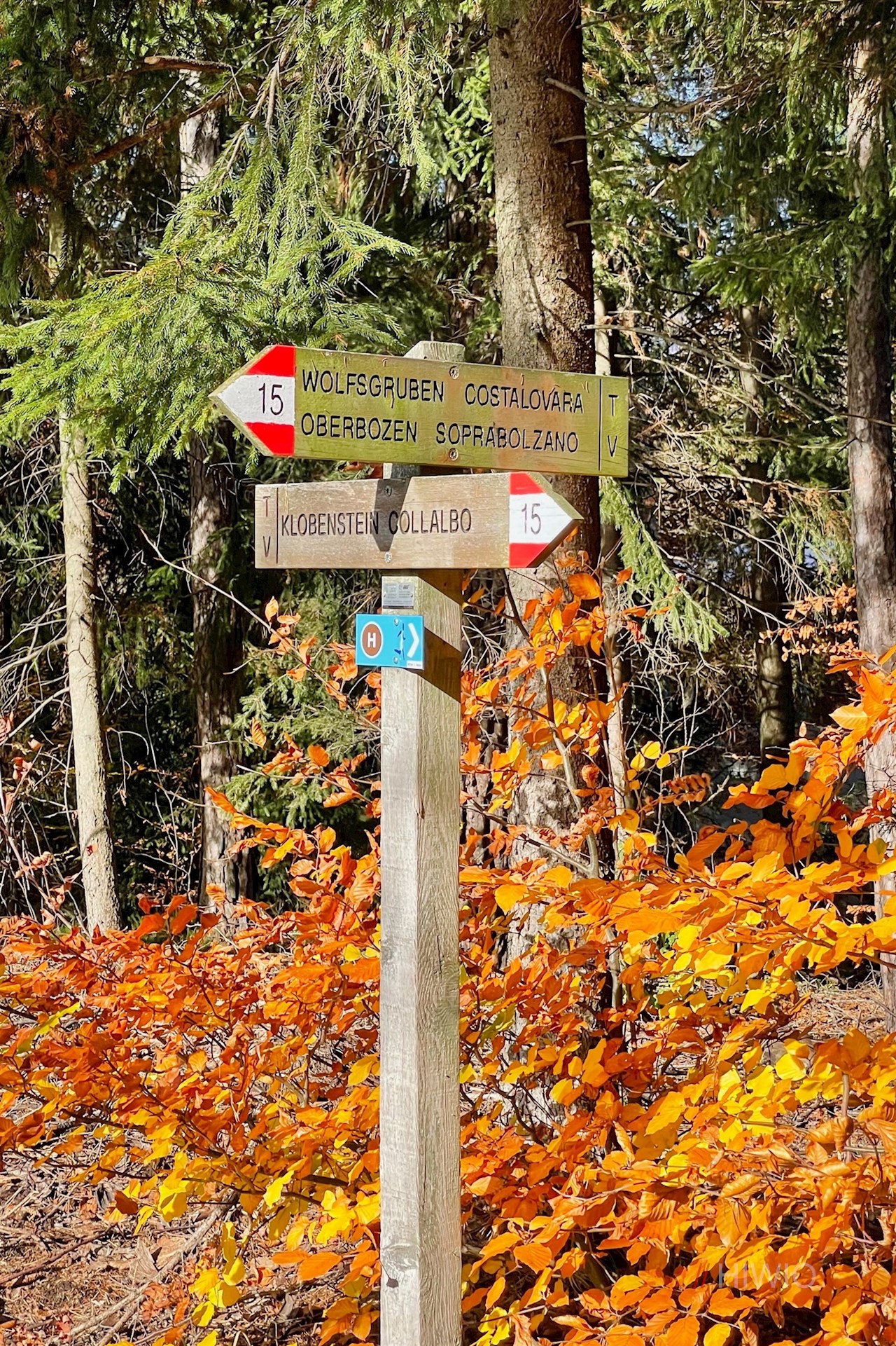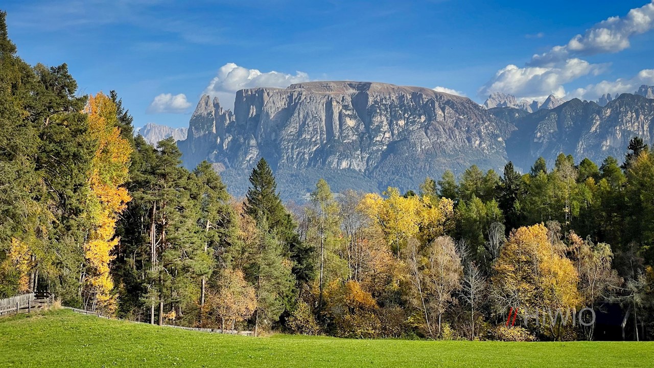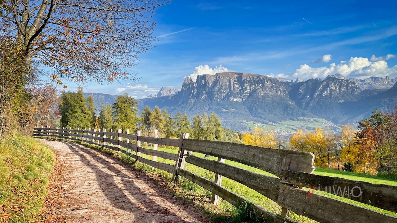 Der Wegnummer 15 Richtung Oberbozen folgend, führt die Wanderung zunächst durch die Sportzone und zieht sich dann im leichten Auf und Ab durch schöne Wiesen und lichten Mischwald, der im Herbst in leuchtend warmen Farben erstrahlt.