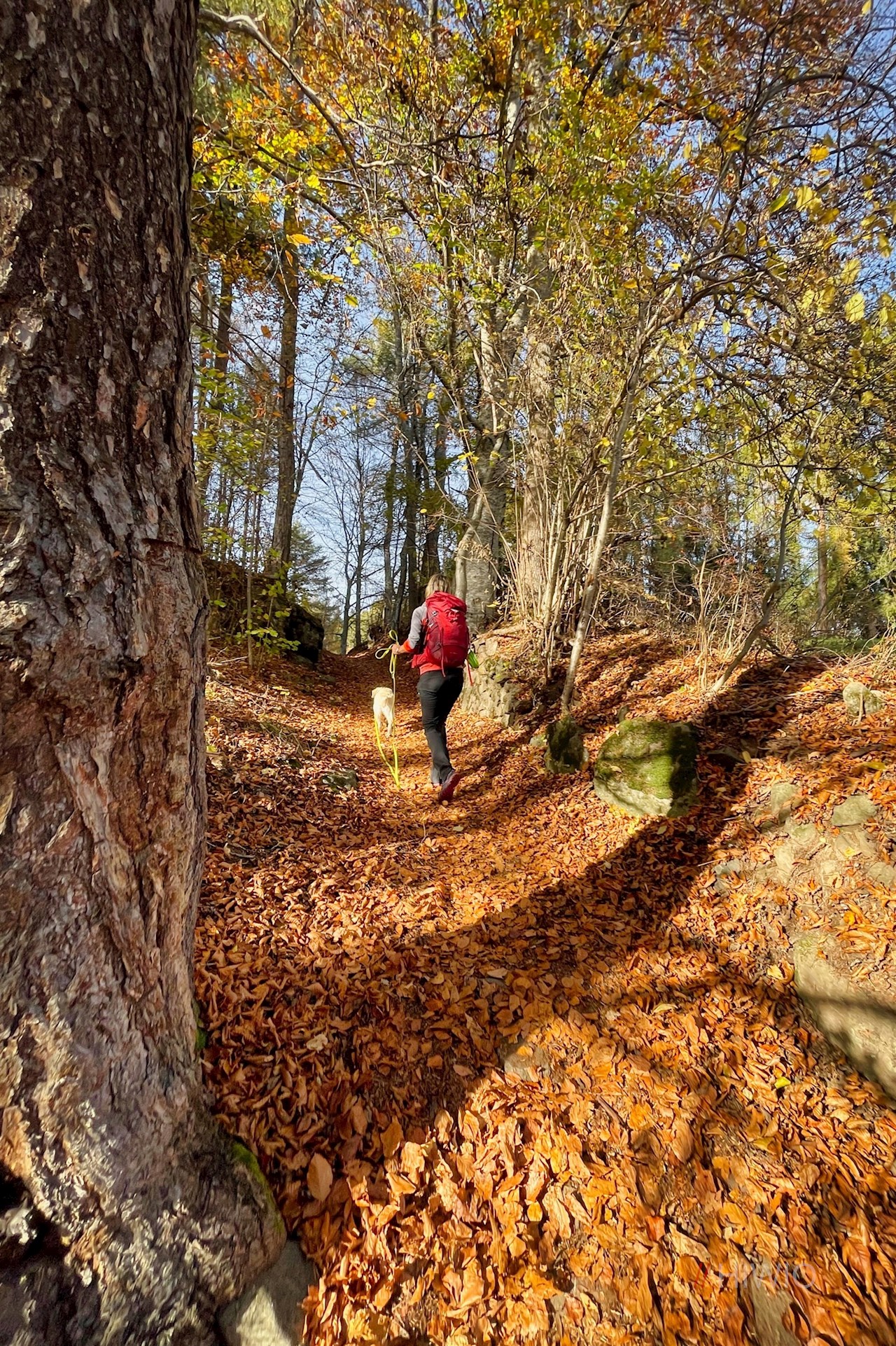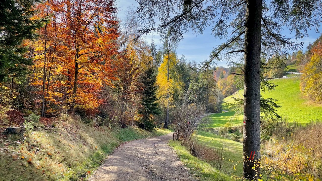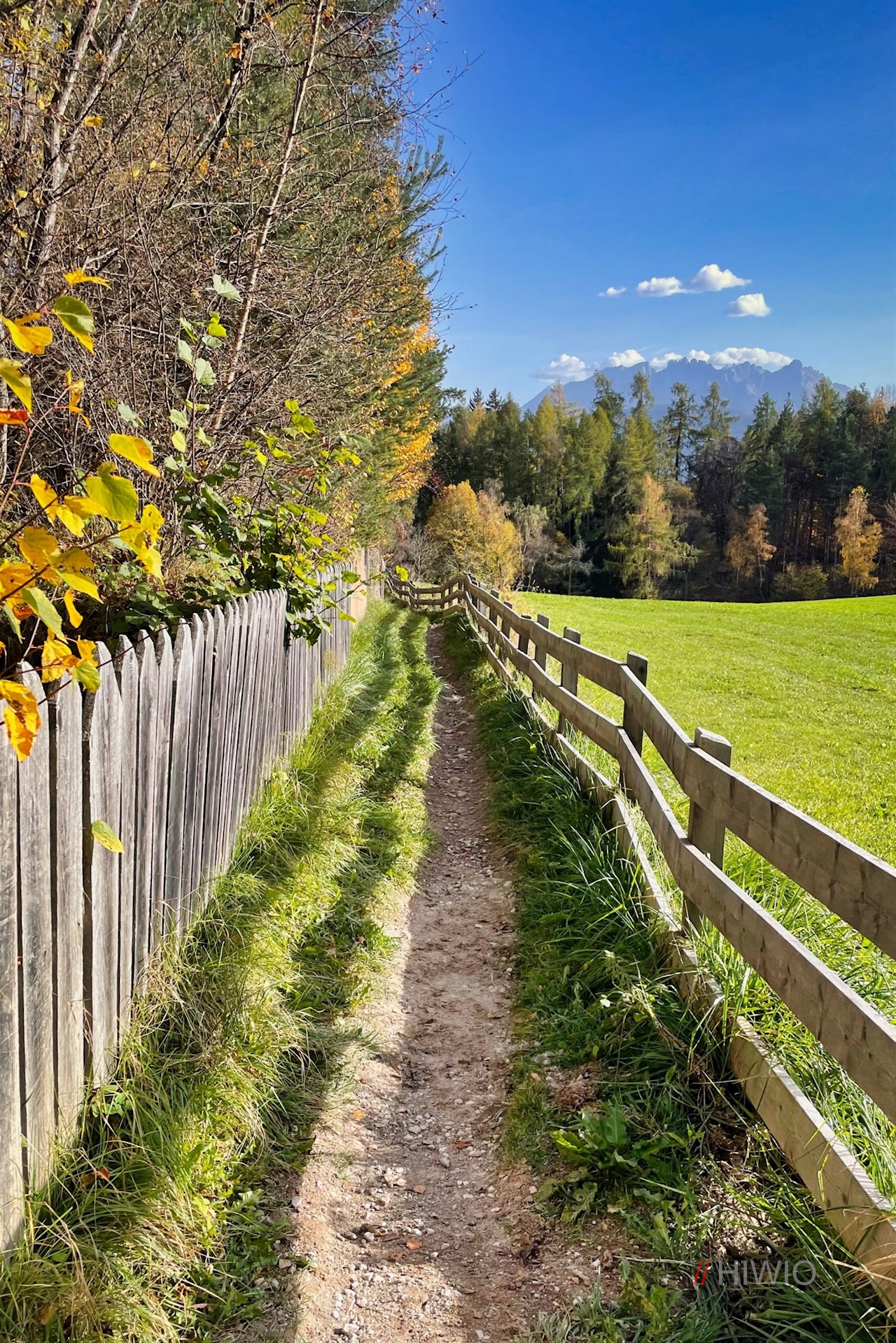 Der Wegnummer 15 Richtung Oberbozen folgend, führt die Wanderung zunächst durch die Sportzone und zieht sich dann im leichten Auf und Ab durch schöne Wiesen und lichten Mischwald, der im Herbst in leuchtend warmen Farben erstrahlt.