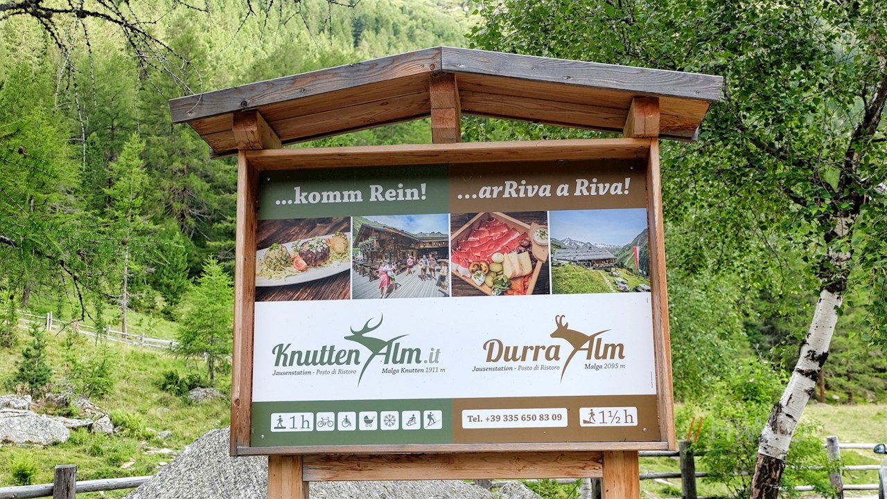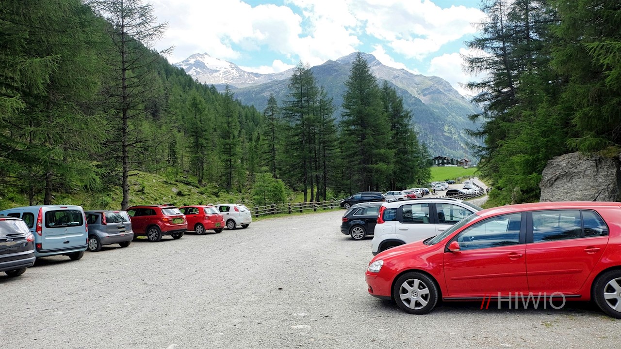Die Wanderung zur Knuttenalm nimmt am weitläufigen Wanderparkplatz am Eingang ins Knuttental ihren Anfang. Er liegt knapp zwei Kilometer hinter der Kirche des idyllischen Bergdorfes Rein in Taufers.