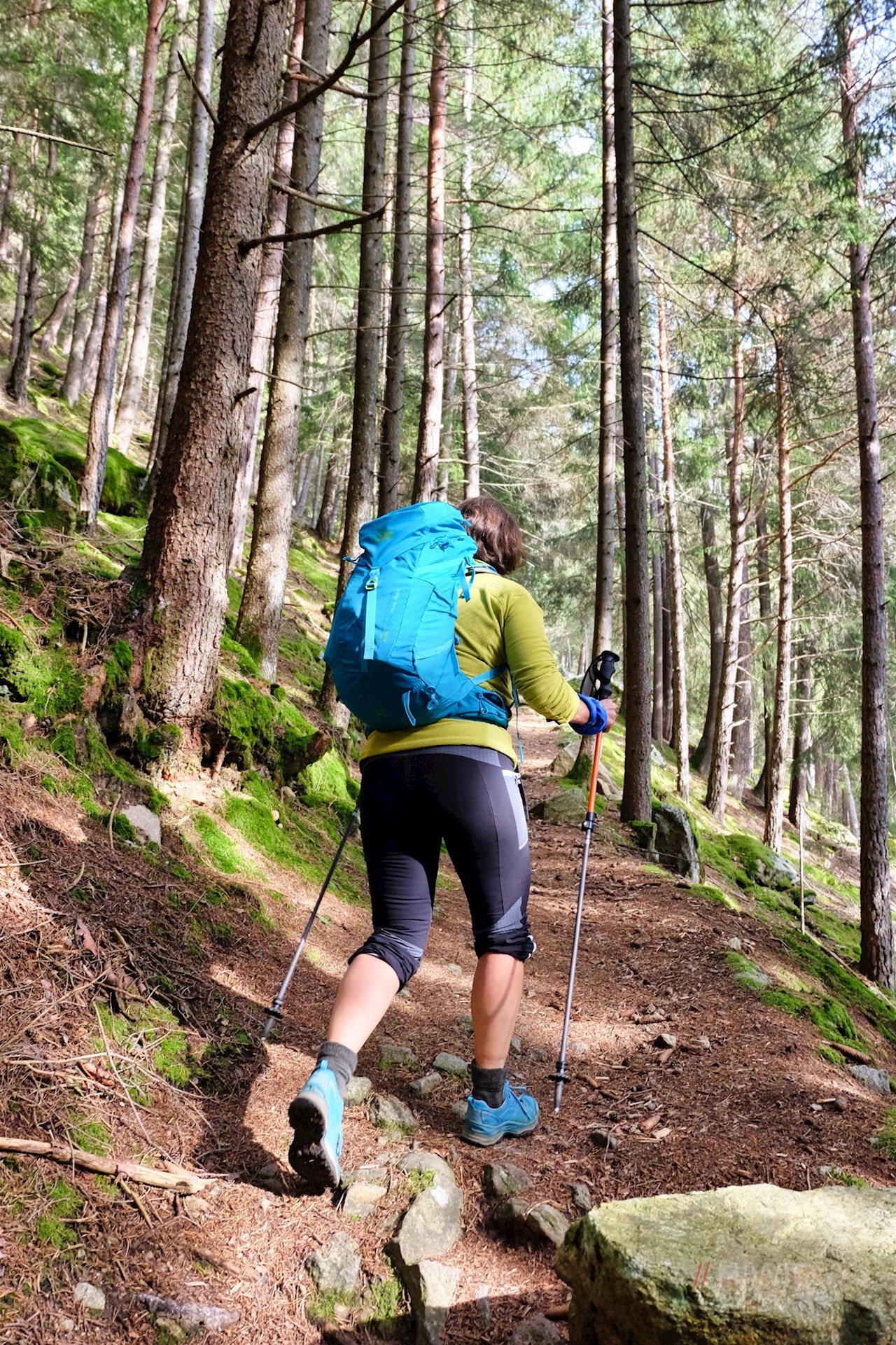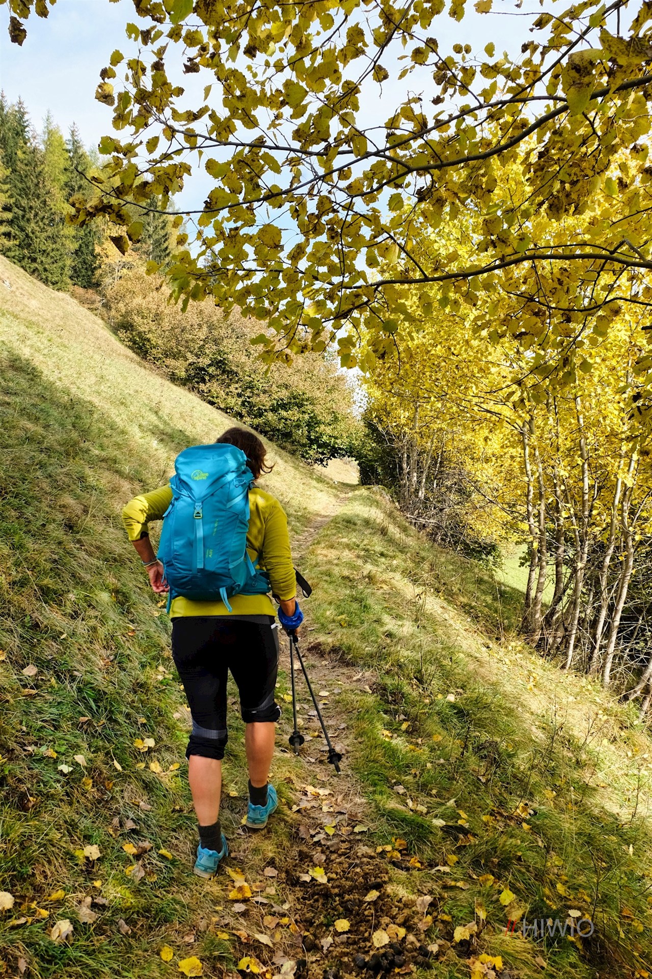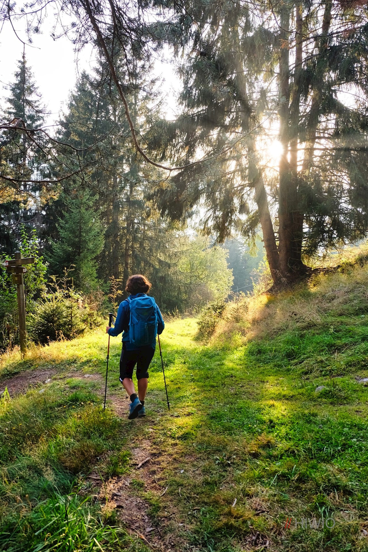 Nach etwa 50 Minuten sanften Wanderns erreicht man den Bergweiler Platten, in dem das Wanderschild Nr. 19 den Weg nach Pfalzen weist. Er führt im teils recht steilen Abstieg durch aussichtsreiche Wiesen und später durch den harzduftenden Wald zum Ausgangspunkt in Pfalzen zurück.