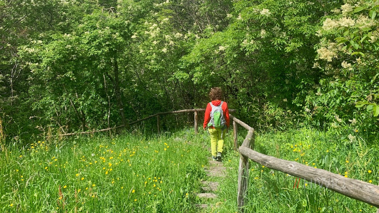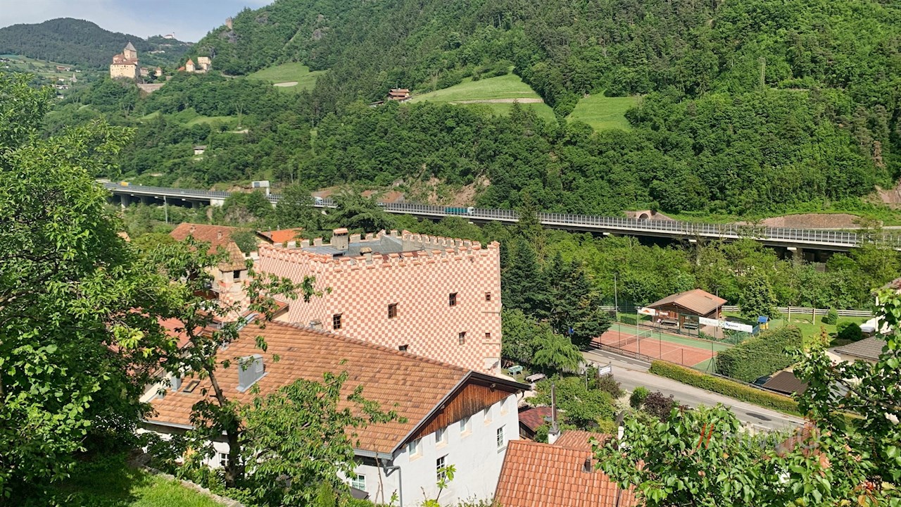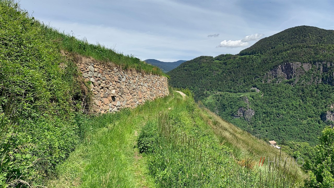 Dieser windet sich im steten Anstieg durch Wiesen und Mischwälder des Eisacktaler Mittelgebirges und öffnet dabei schöne Ausblicke. Namentlich das nunmehr tiefer liegende Kollmann, die Trostburg und die wuchtigen Felswände des Schlern stechen ins Auge.