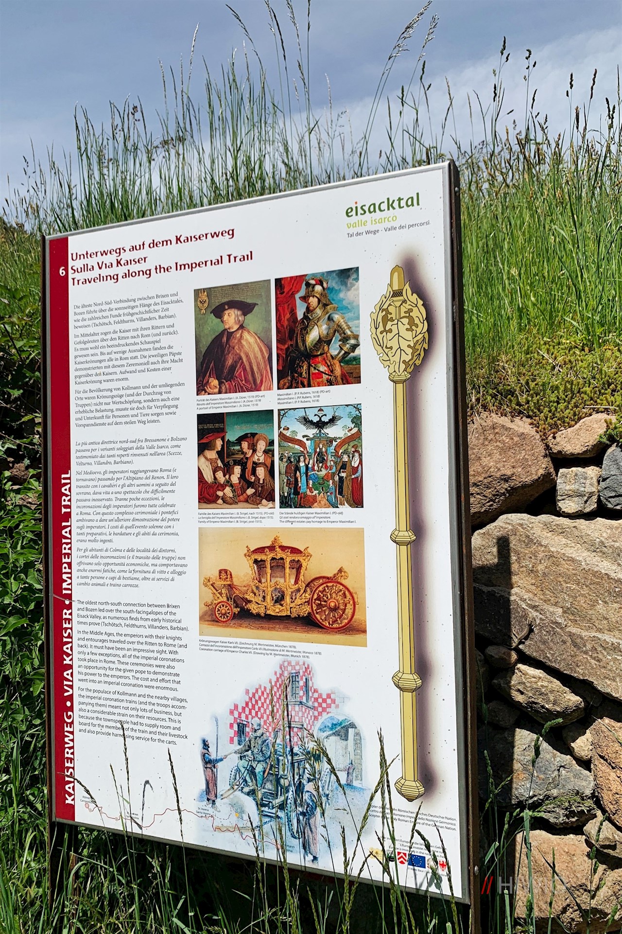 Die Wanderung von Kollmann auf den Ritten folgt historischen Wegen: In Kollmann nahm die sogenannte „Kaiserstraße“, eine der ältesten Nord-Südverbindungen zwischen Brixen und Bozen, ihren Anfang. Da die Eisackschlucht von Kollmann bis zum Beginn des 14. Jahrhunderts zumeist unpassierbar war, wanderten die Menschen auf diesem Wege über die Eisacktaler Hänge auf den Ritten und von dort nach Bozen hinab. Wie bereits sein Name verrät, zogen auch zahlreiche mittelalterliche Könige auf den Ritten und weiter nach Rom, um sich in der Ewigen Stadt vom Papst zum Kaiser krönen zu lassen.