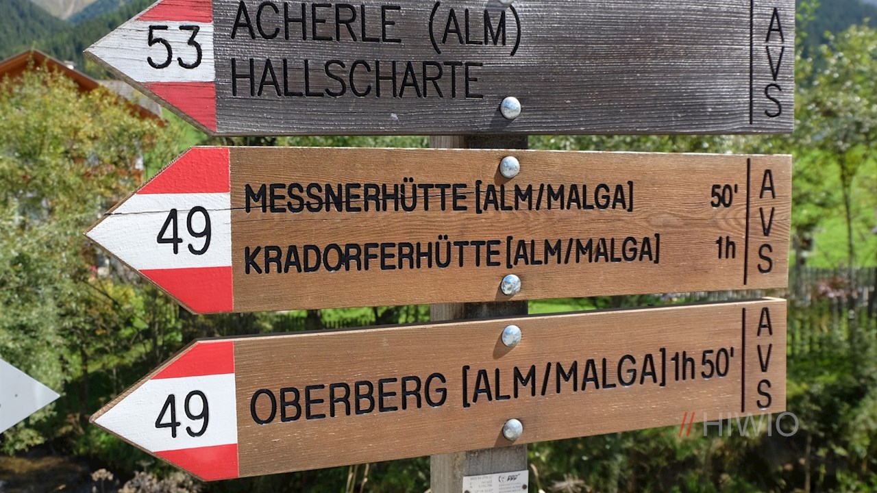 Angegebene Aufstiegszeiten Messnerhütte und Kradorfer Alm