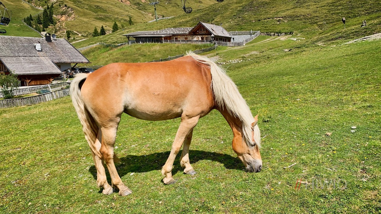Von der Waidmannalm führt der Wanderweg Nr. 18A (später 17) zur nunmehr recht nahen Bergstation zurück. Wer möchte, kann auch auf die Seilbahn verzichten und auf dem Weg Nr. 14 nach Falzeben hinabwandern (angegebene Gehzeit 1:10 h).