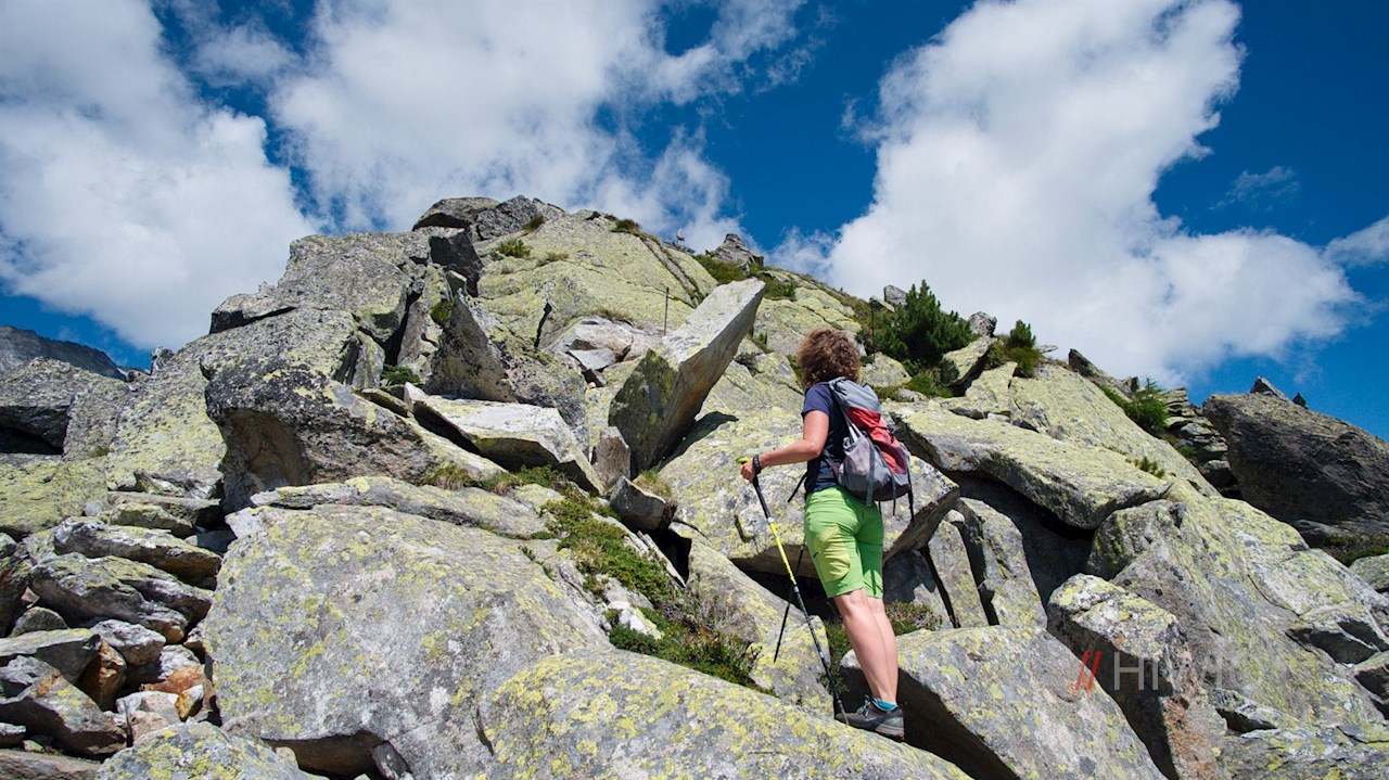 Zuletzt folgt der abermals steilere Anstieg über grobes Blockwerk auf den kreuzgeschmückten Gipfel des Kreuzkofel.