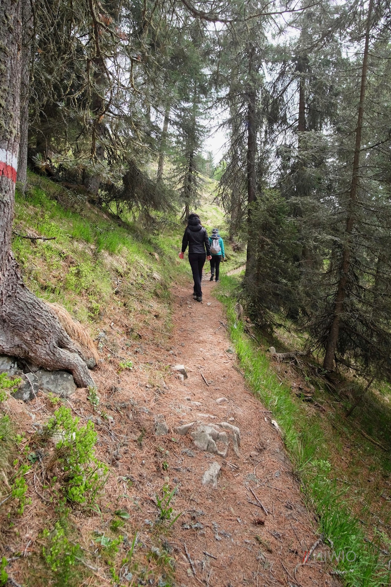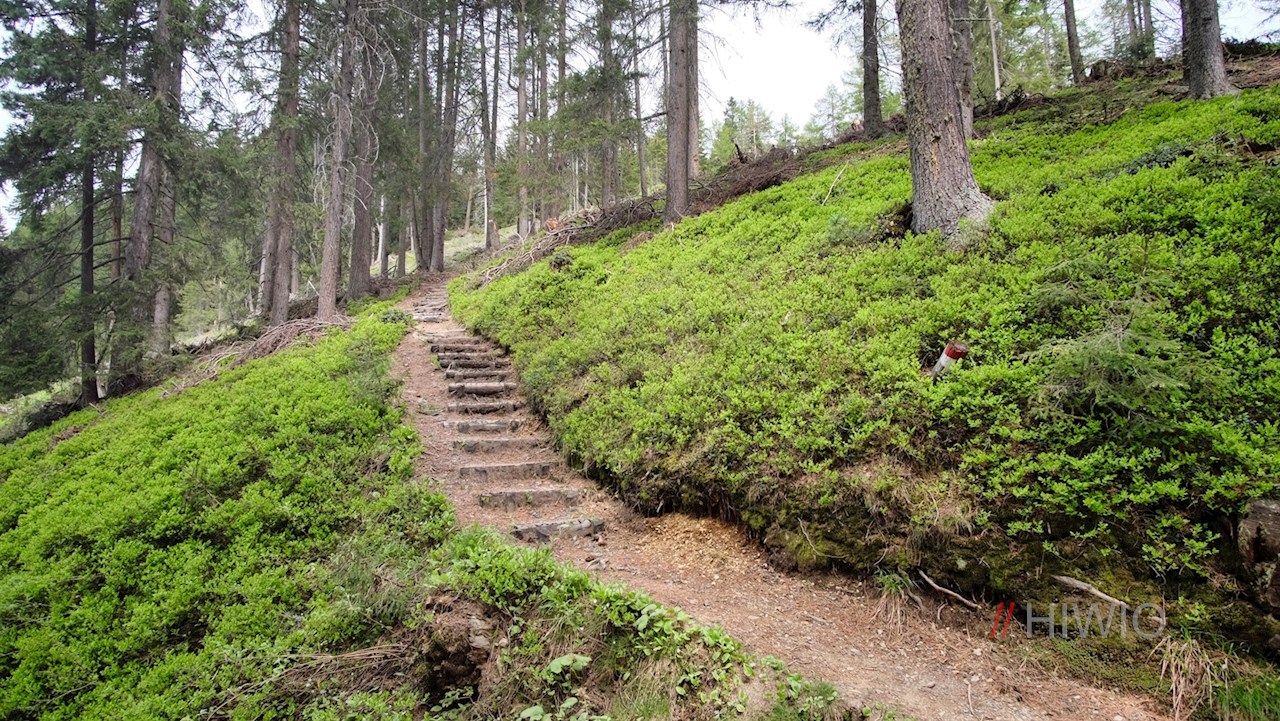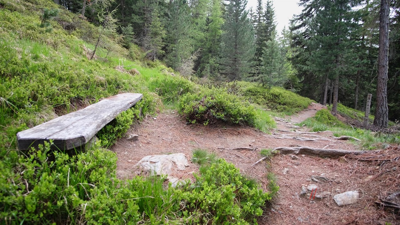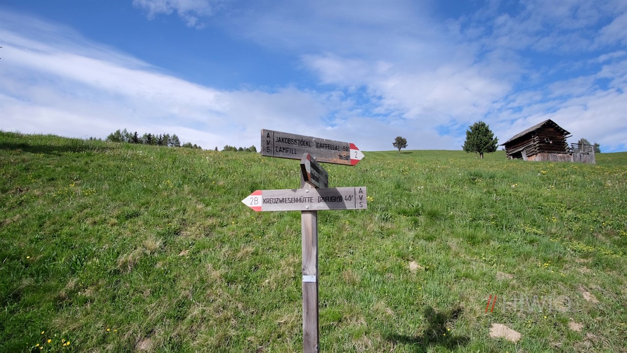 Die Wanderung zur Kreuzwiesenalm nimmt am Wanderparkplatz Schwaiger Böden oberhalb des sonnenverwöhnten Dorfes Lüsen ihren Anfang. Vom Parkplatz führt der anfangs breite Wanderweg Nr. 2A im angenehmen Anstieg durch den schattenverheißenden Nadelwald.