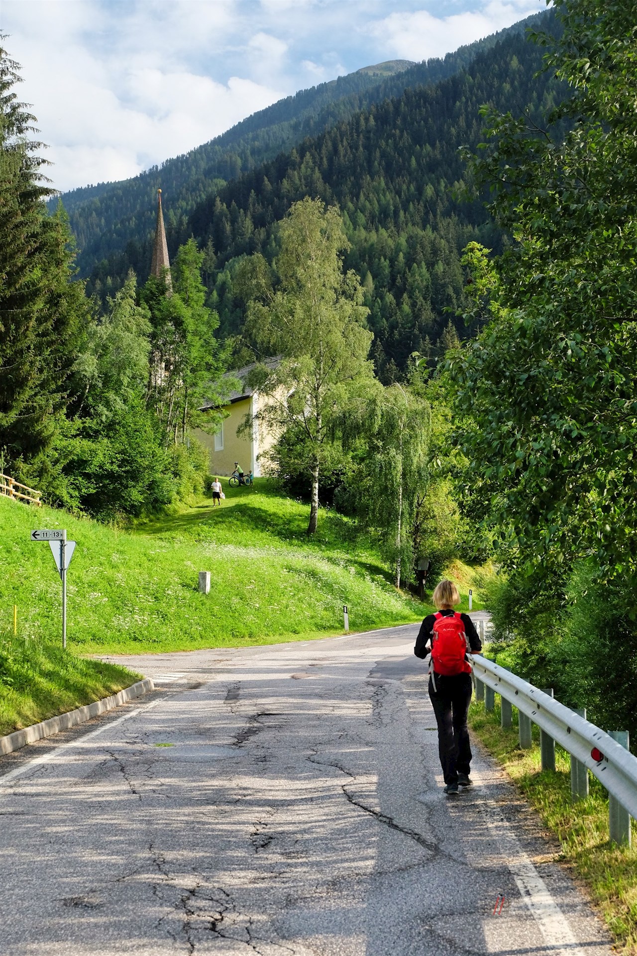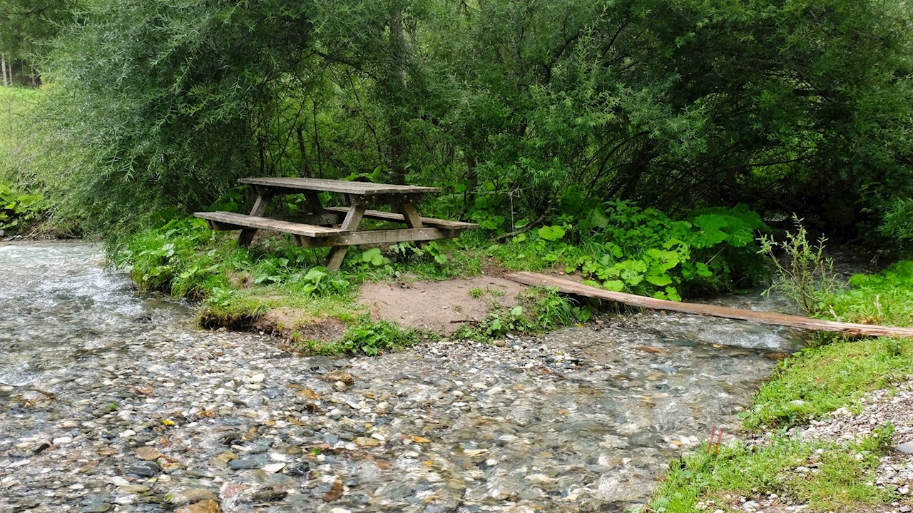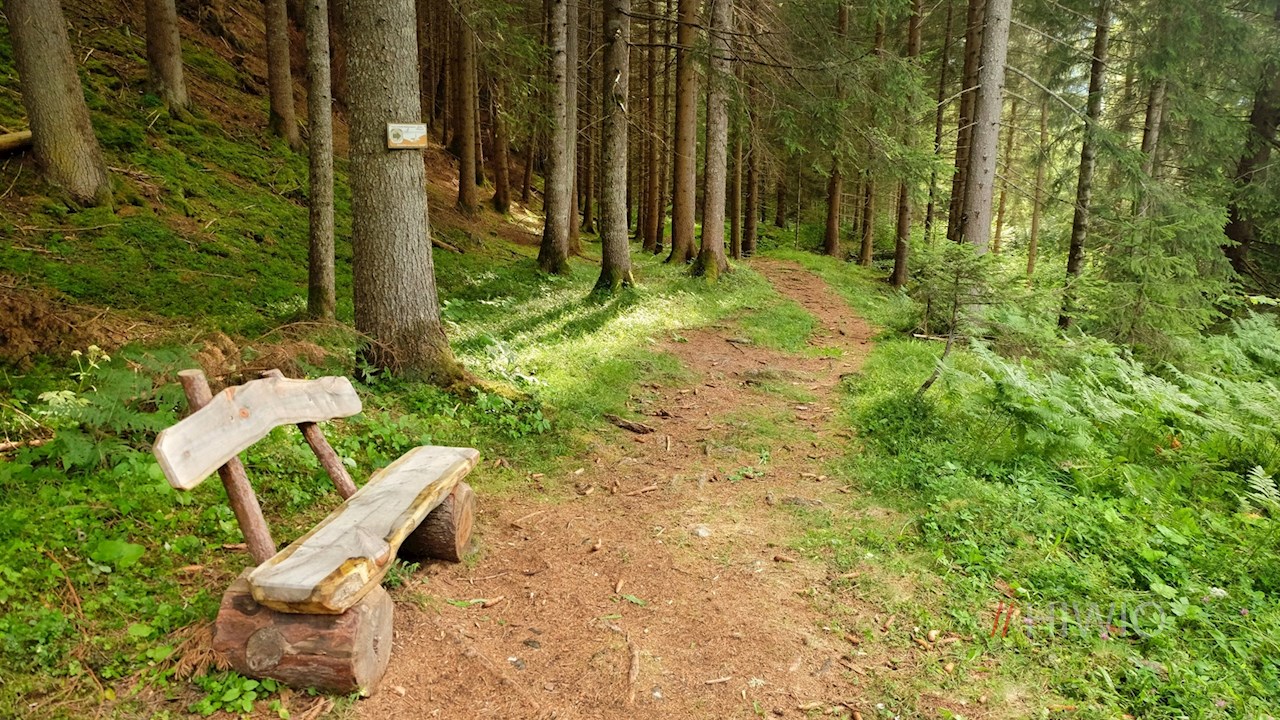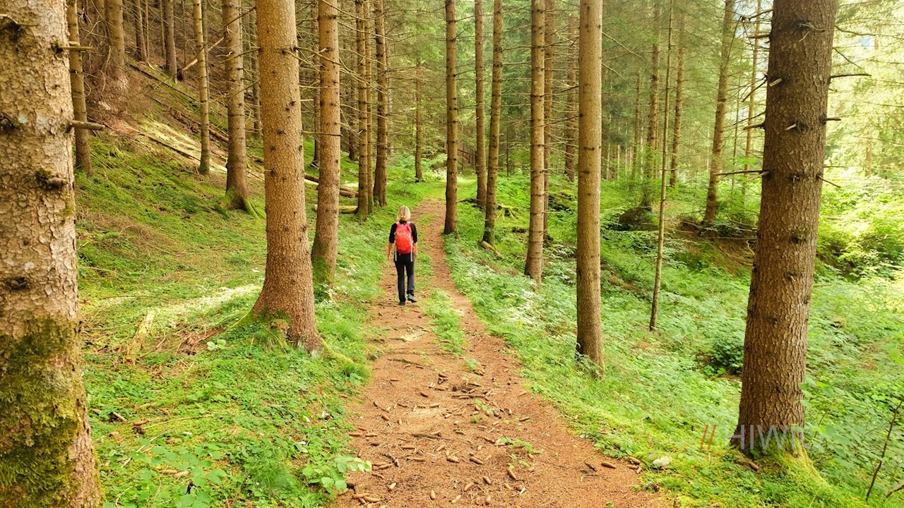 Auf dem Rückweg folgt man dem kleinen Waldweg, der auf der gegenüberliegenden Bachseite im Schatten der Bäume nach Lüsen zurückführt.