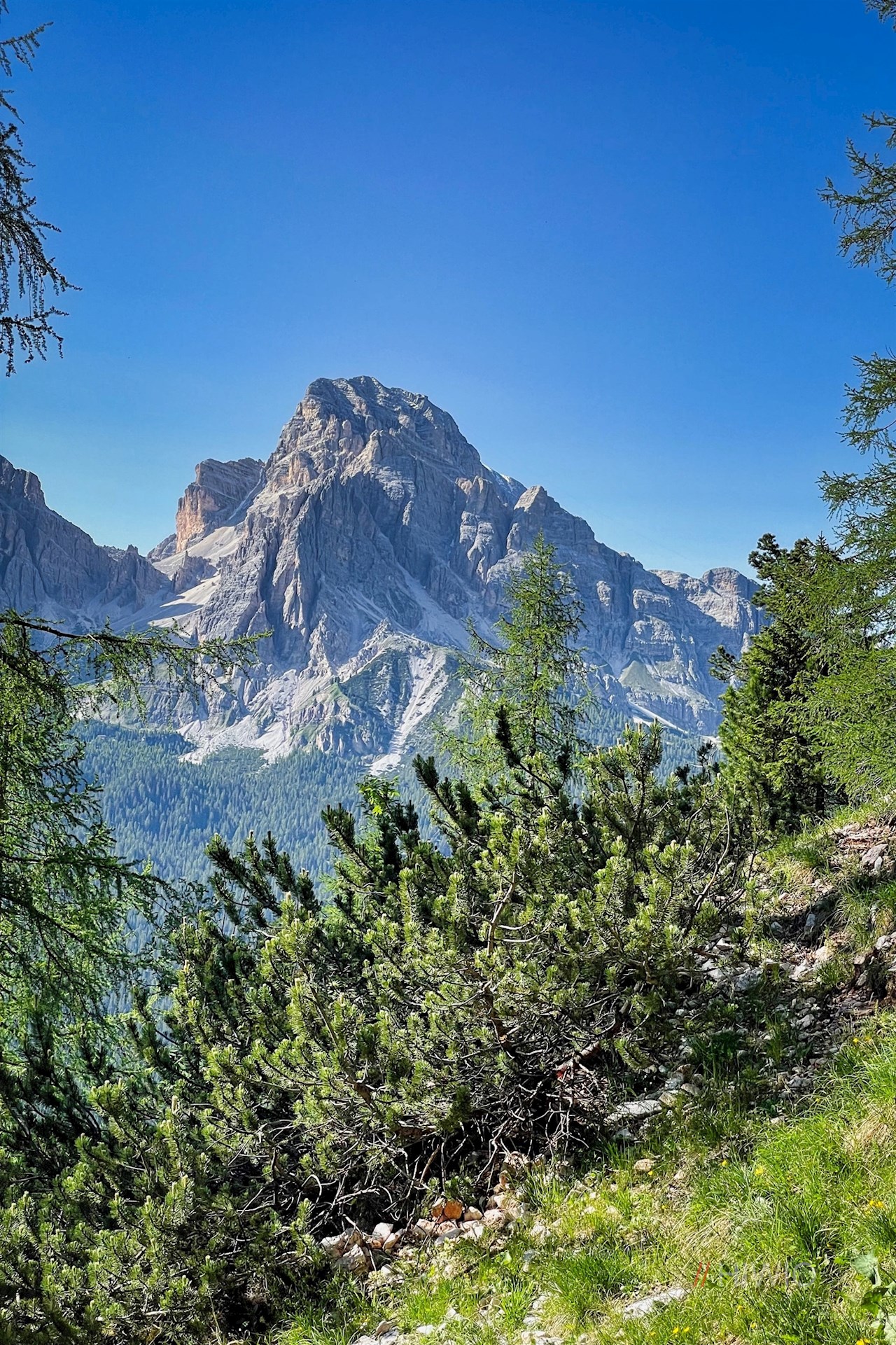 Er zieht sich in zahlreichen Serpentinen über die blumenreichen Hänge und öffnet dabei schöne Ausblicke auf den Averau, die Cinque Torri und die Tofana.