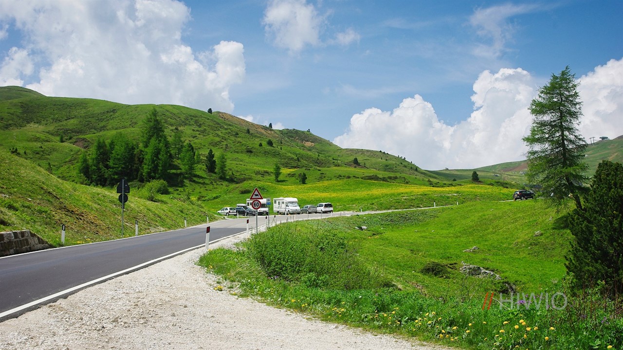 Die Langkofelumrundung beginnt auf einem der zahlreichen Parkplätze am Sellajoch, das man über Wolkenstein in Gröden oder Canazei anfahren kann.