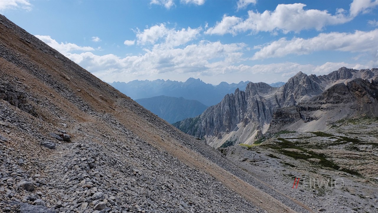 Von der Bergstation auf 2.096 m Höhe folgt man dem Wanderweg Nr. 18 in Richtung Gamsstallscharte. Er steigt zunächst serpentinenförmig über geröll- und schotterbeladene Hänge an und führt schließlich durch ein Labyrinth aus bizarren Felstürmen und Steinblöcken zu einer Felsrinne. Sie führt direkt auf die 2.590 m hohe Gamsstallscharte, hinter der sich der karge Valsordakessel ausbreitet.