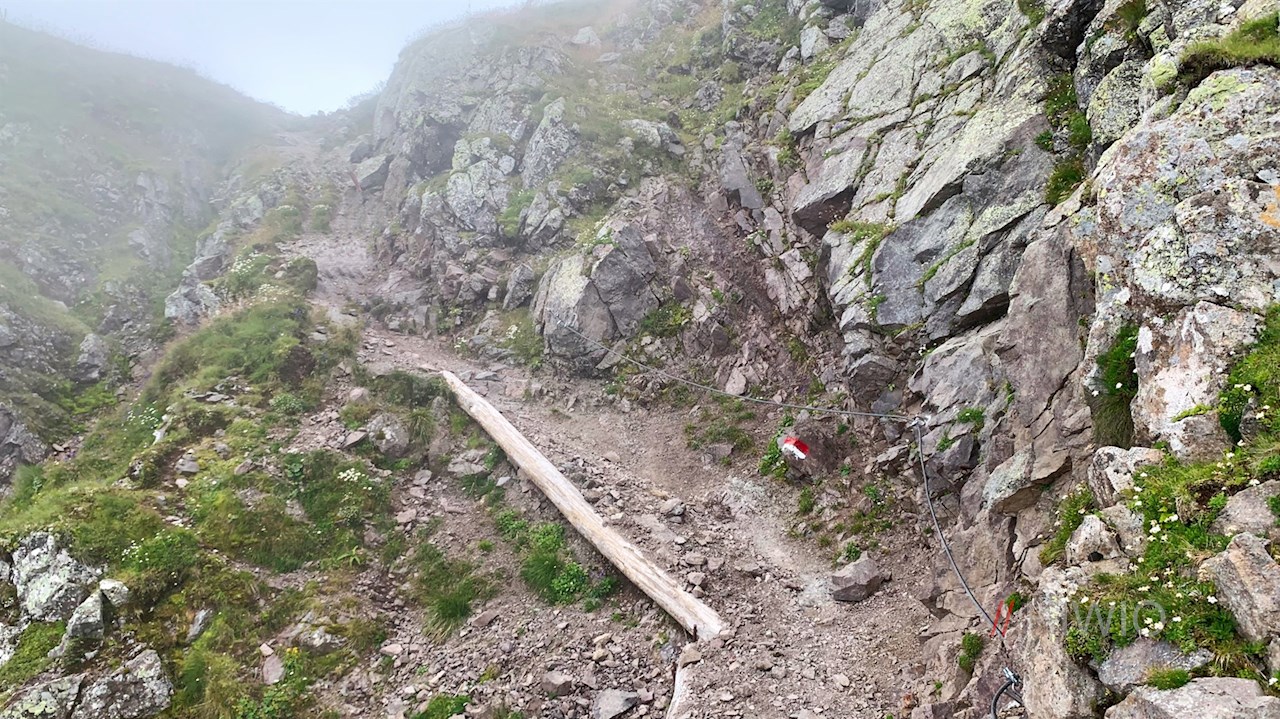 Seine Ufer laden wenig später zur Zwischenrast, bevor sich der Anstieg auf dem rechts abzweigenden Wanderweg Nr. 10 in Richtung Lana fortsetzt. Er zweigt gleich darauf links ab und steigt über Schotter, Blockwerk und Bergwiesenhänge auf den Porphyrgipfel der Laugenspitze an.