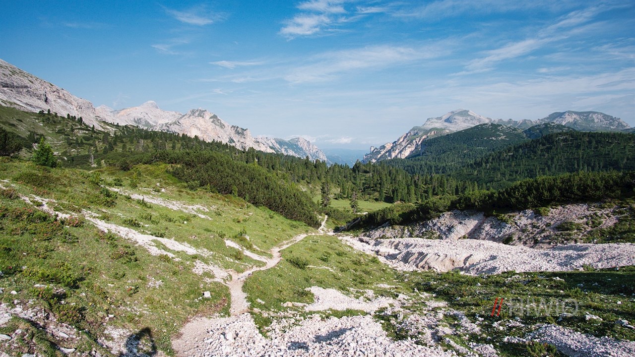 Weiterhin der Beschilderung Nr. 9 folgend, wandert man von der Fodara Hütte in Richtung Ra Stua weiter. Wenige hundert Meter später weist ein blaues Schild den rechts abzweigenden Weg auf den Lavinores / Sas dla Para.