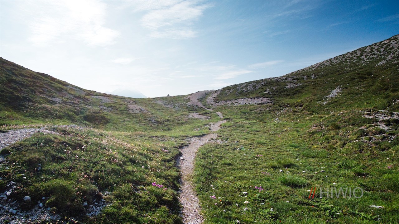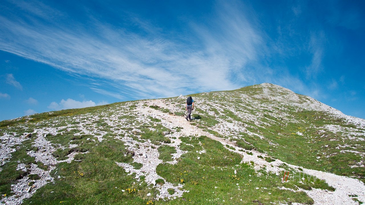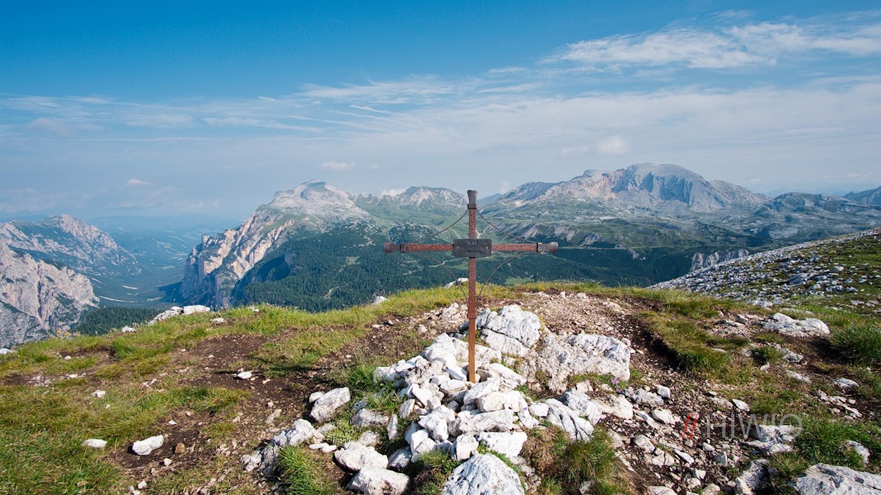 Am Ostgrat zweigt er schließlich nach rechts ab und steigt vor der imposanten Kulisse der Hohen Gaisl, des Cristallo und der Tofane über den grasbewachsenen Südostrücken zum kleinen Gipfelkreuz des Lavinores an.