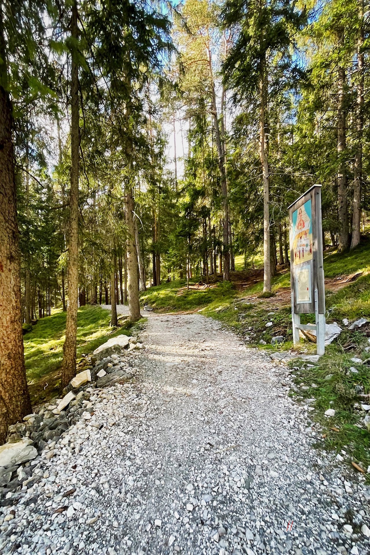 Die Wanderung auf dem Legendenweg beginnt am westlichen Dorfeingang in St. Christina.