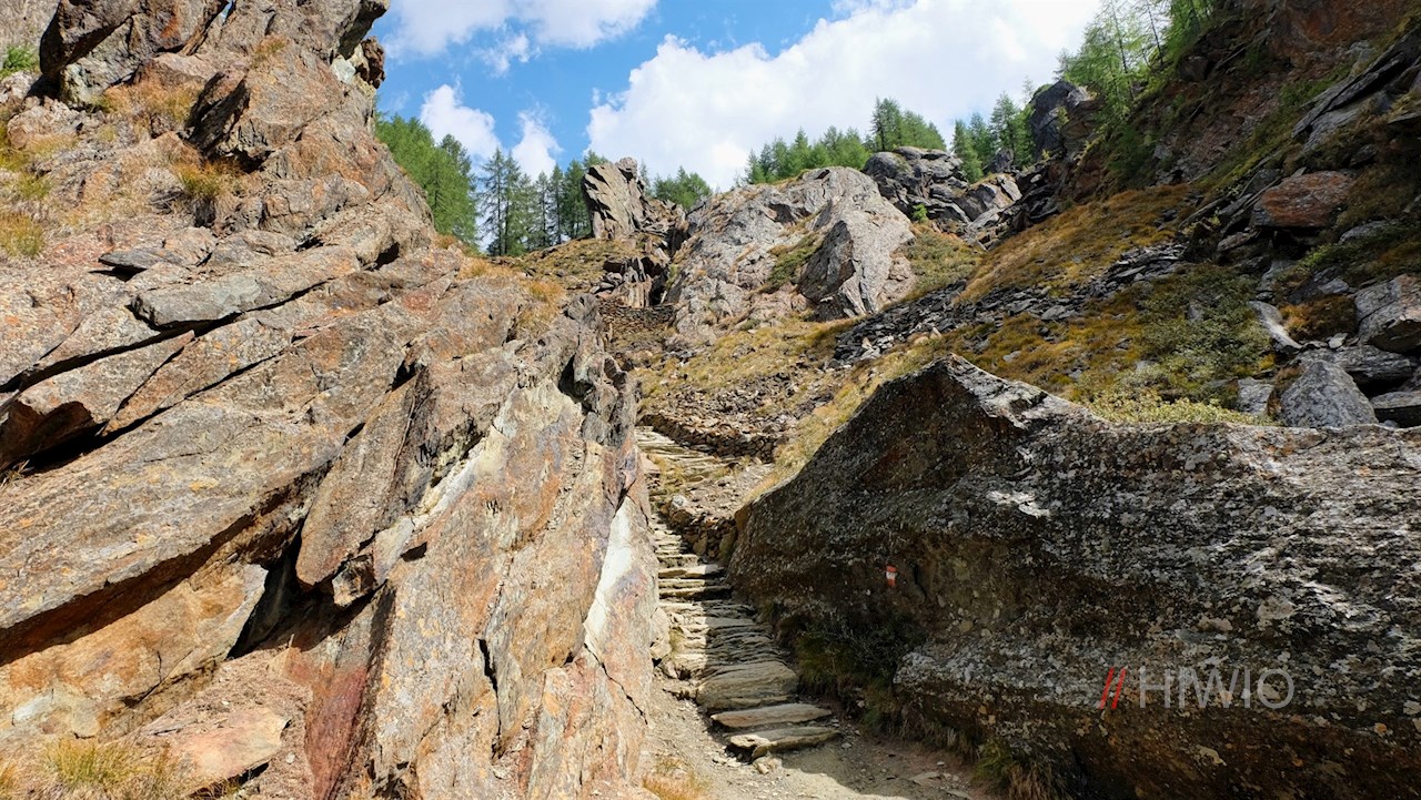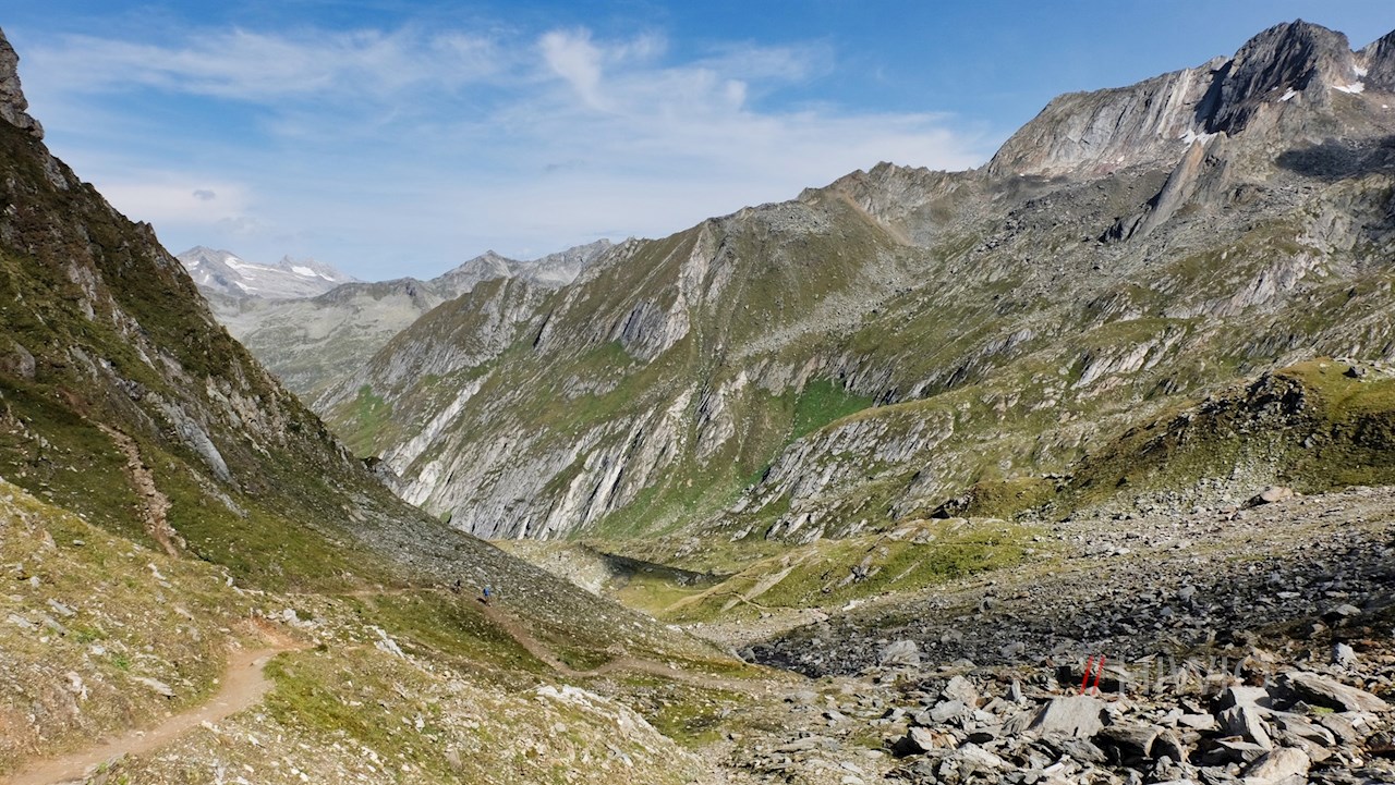 Nahe der Talschlusshütte zweigt der Wanderweg rechts ab und steigt gleichmäßig zu den Almhütten der Labesau an.