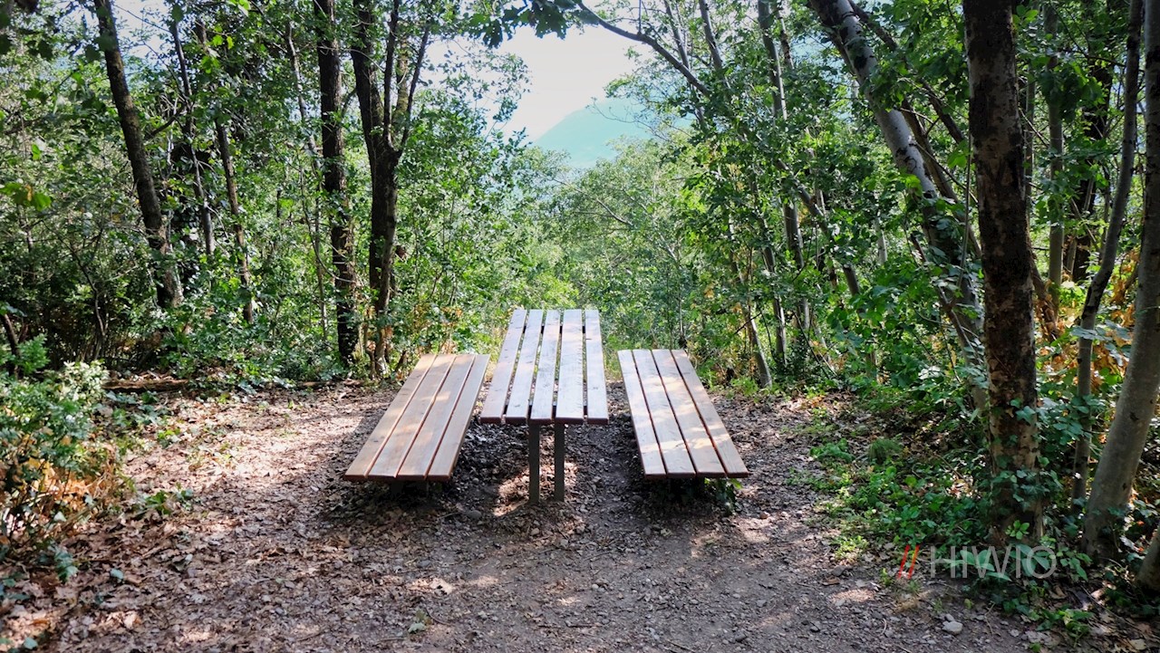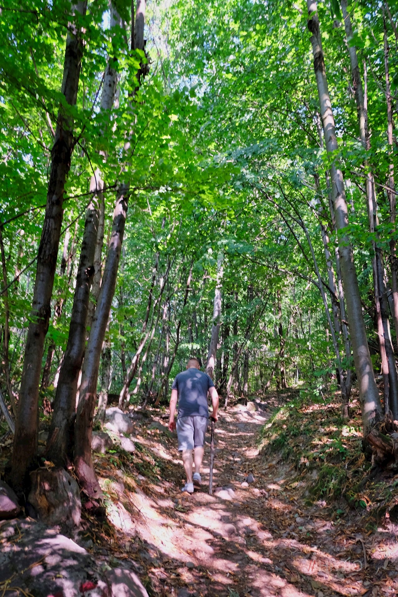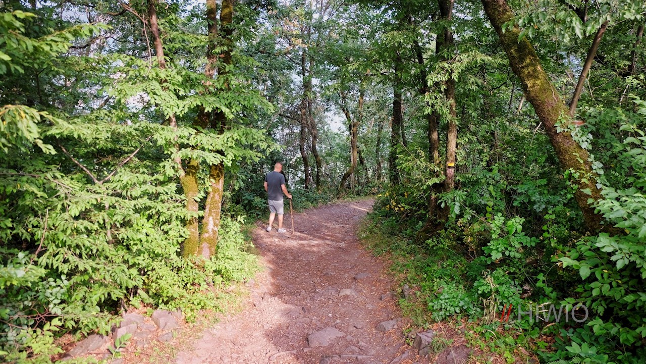 Am Parkplatz weist das Wanderschild Nr. 18 den Anstieg zur Leuchtenburg. Er führt zunächst an Weinbergen entlang, hinter denen er sogleich in einen lichten Laubwald eintaucht. Nun folgt der stete Anstieg durch den schattenverheißenden Wald, der hie und da schöne Ausblicke freigibt.