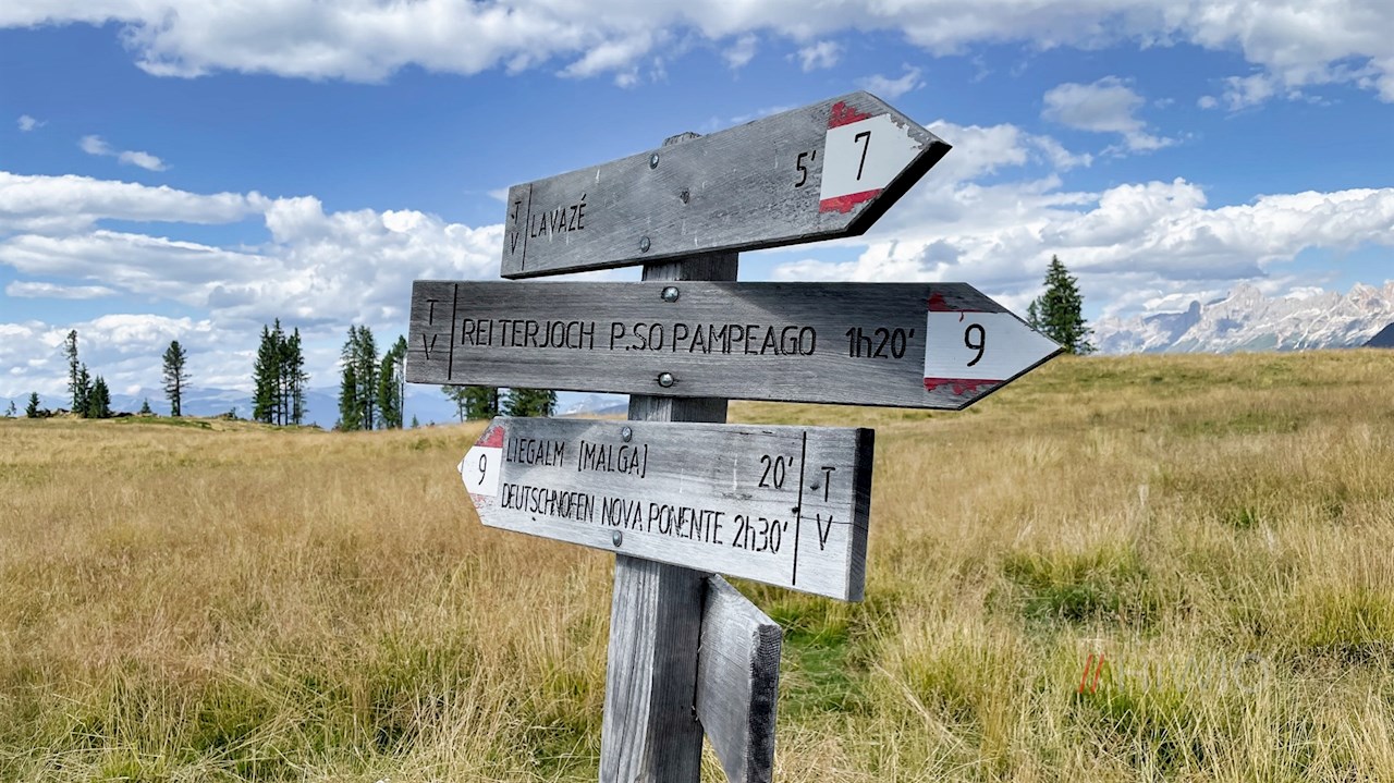 Die Wanderung zur Liegalm beginnt auf dem rund 1.800 m hohen Lavazéjoch, welches das Eggental mit dem Fleimstal verbindet.