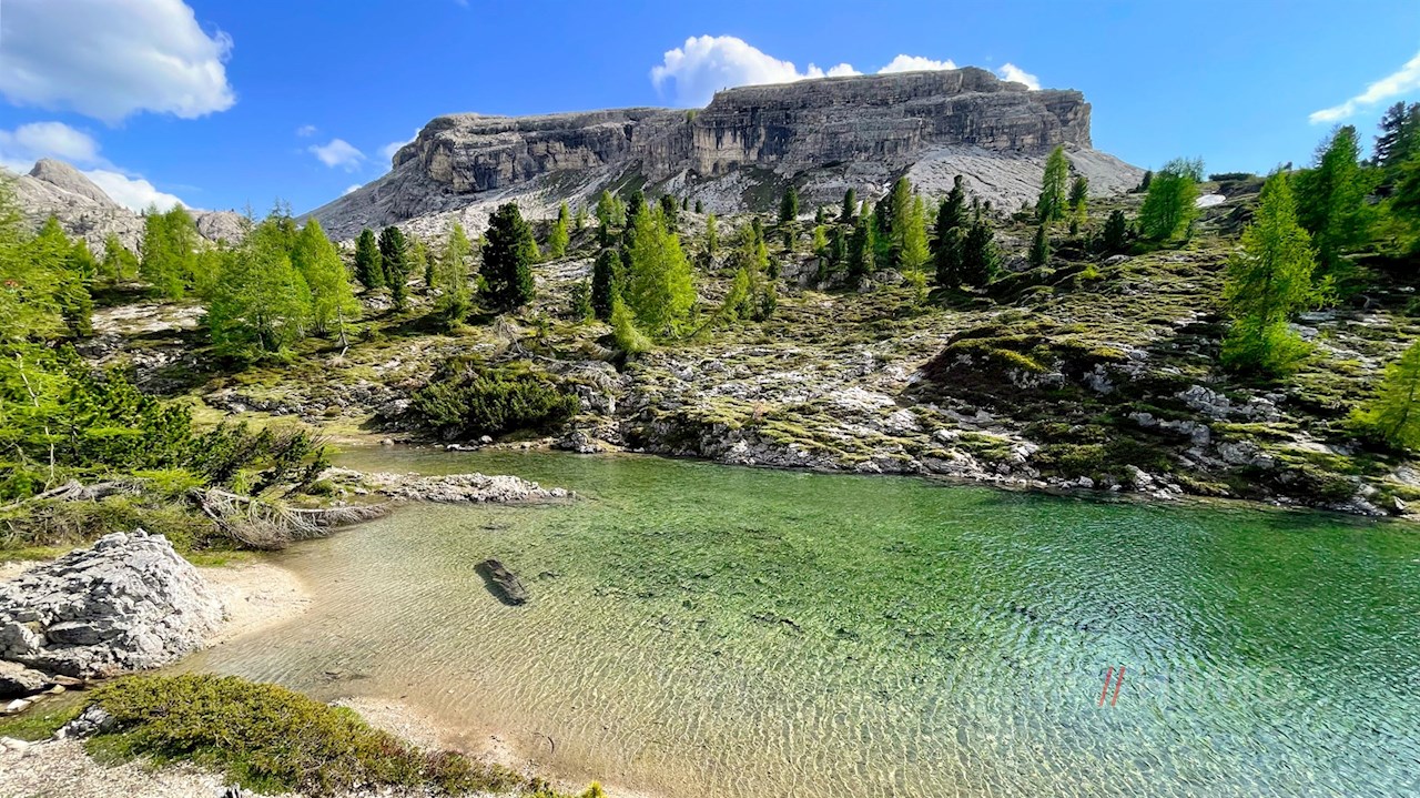 Neben seinem nahezu mystischen Farbenspiel ist es vor allem seine idyllische Lage, die ihm seinen besonderen Liebreiz verleiht: An seinen Ufern öffnen sich malerische Ausblicke auf die nahen Felswände der Croda Negra, des Hexenstein, des Lagazuoi, der Tofana und des Averau.