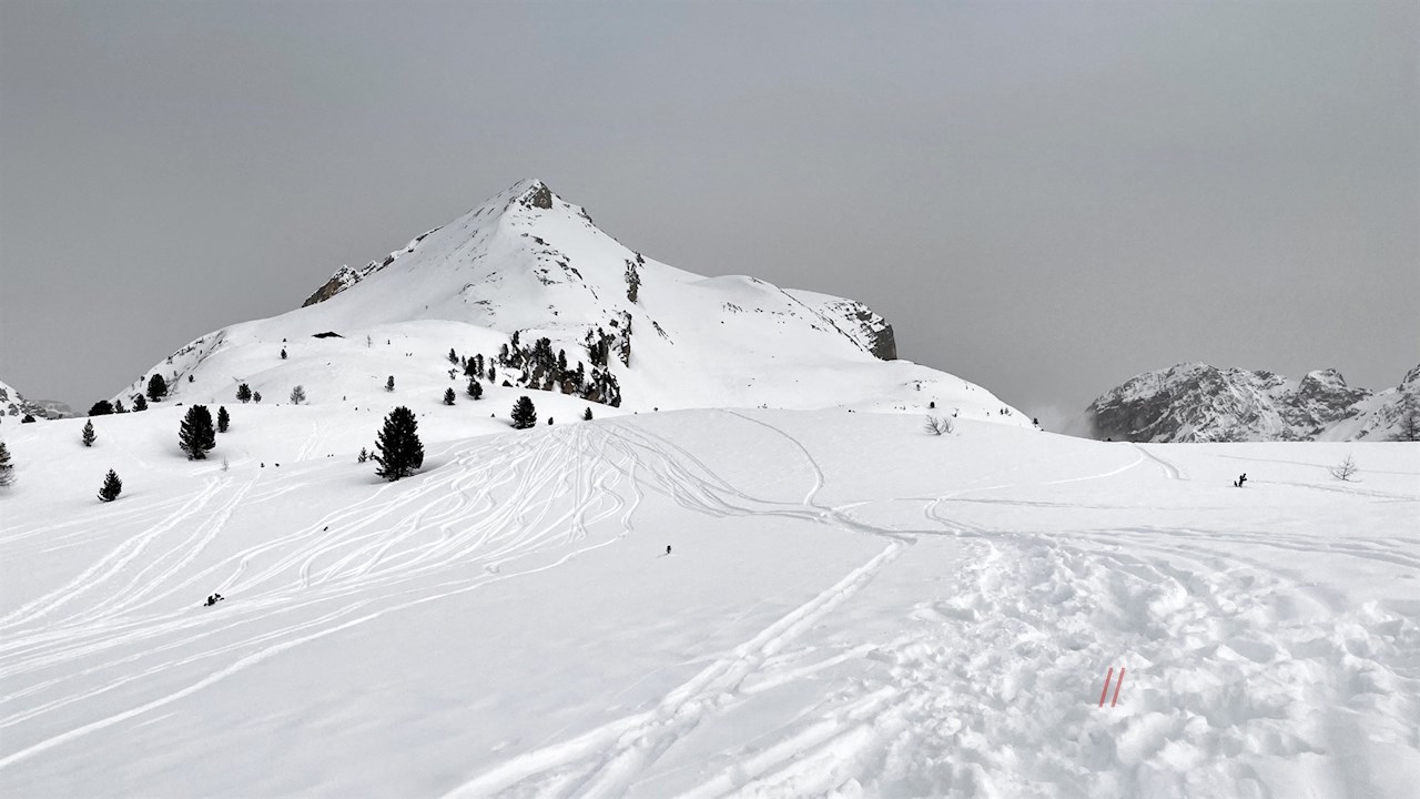 Auf dem Limojoch oberhalb der Faneshütte öffnen sich atemberaubend schöne Ausblicke auf die ringsum aufragenden Dolomiten und das sagenumwobene Reich der Fanes. Im Winter erfreut sich dieser kreuzgeschmückte Gebirgspass bei Wanderern, Skitourengehern und Schneeschuhwanderern großer Beliebtheit.