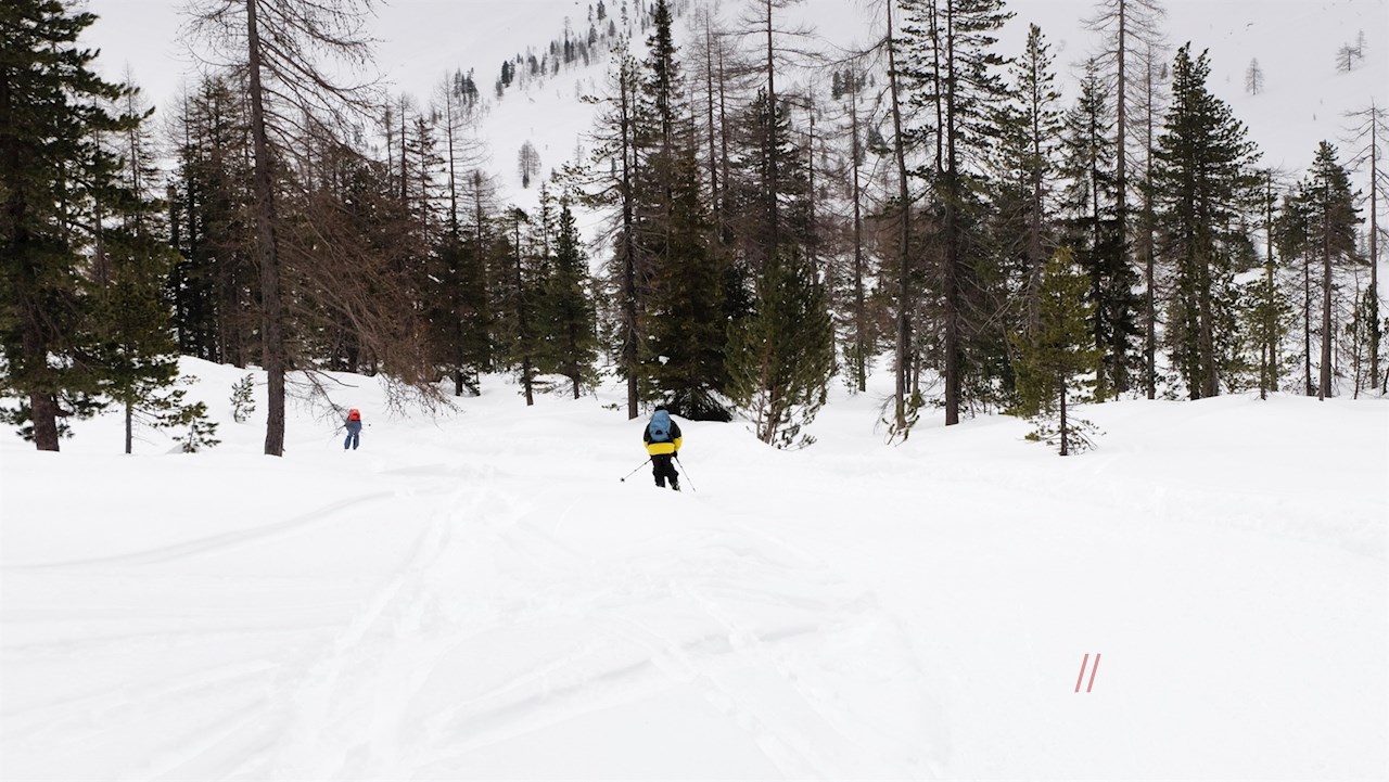 Die Winterwanderung auf das Limojoch nimmt in Pederü im hinteren Rautal ihren Anfang.