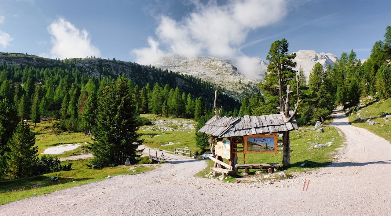 Hinter den ersten Hütten gabelt sich der Weg: Während sich rechts die Wanderung zur beliebten Lavarellahütte fortsetzt, führt der links abzweigende Weg Nr. 11 zur nunmehr nahen Faneshütte.