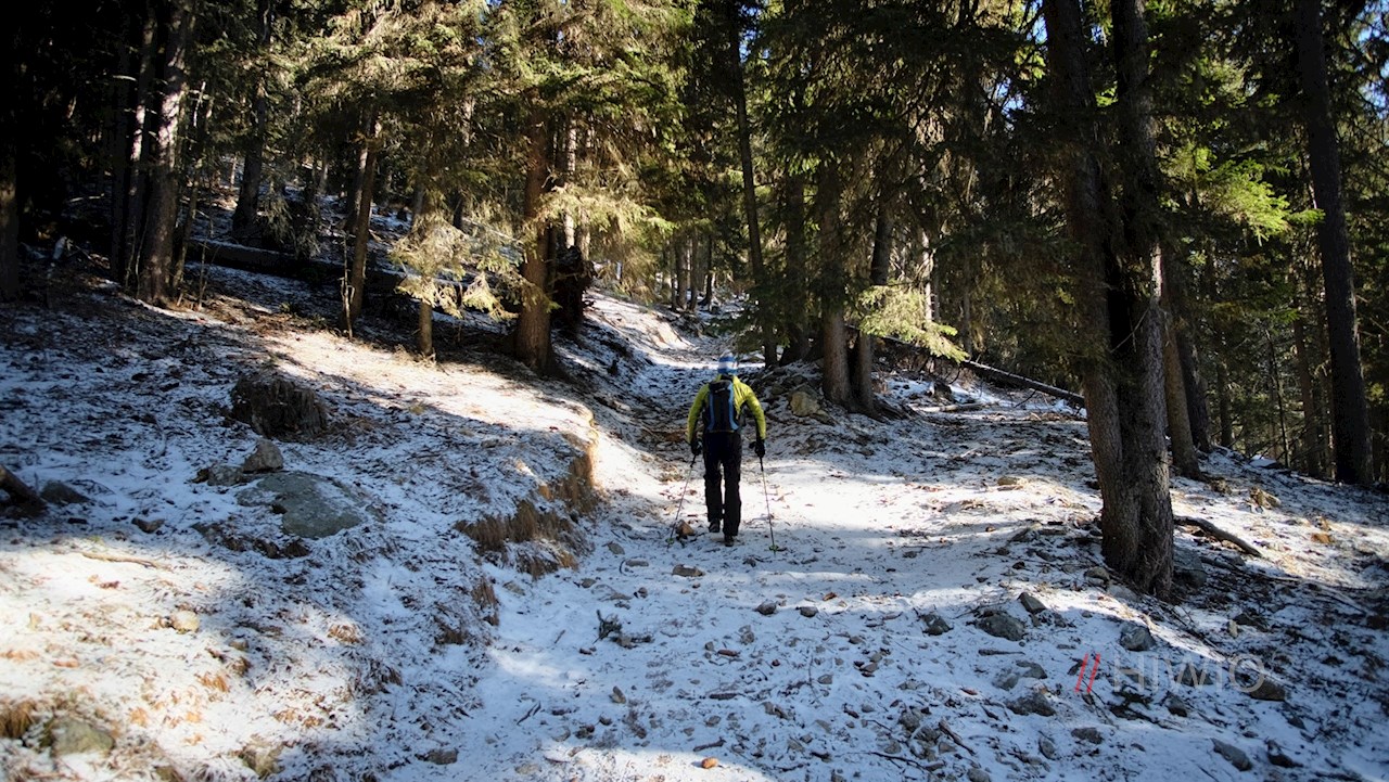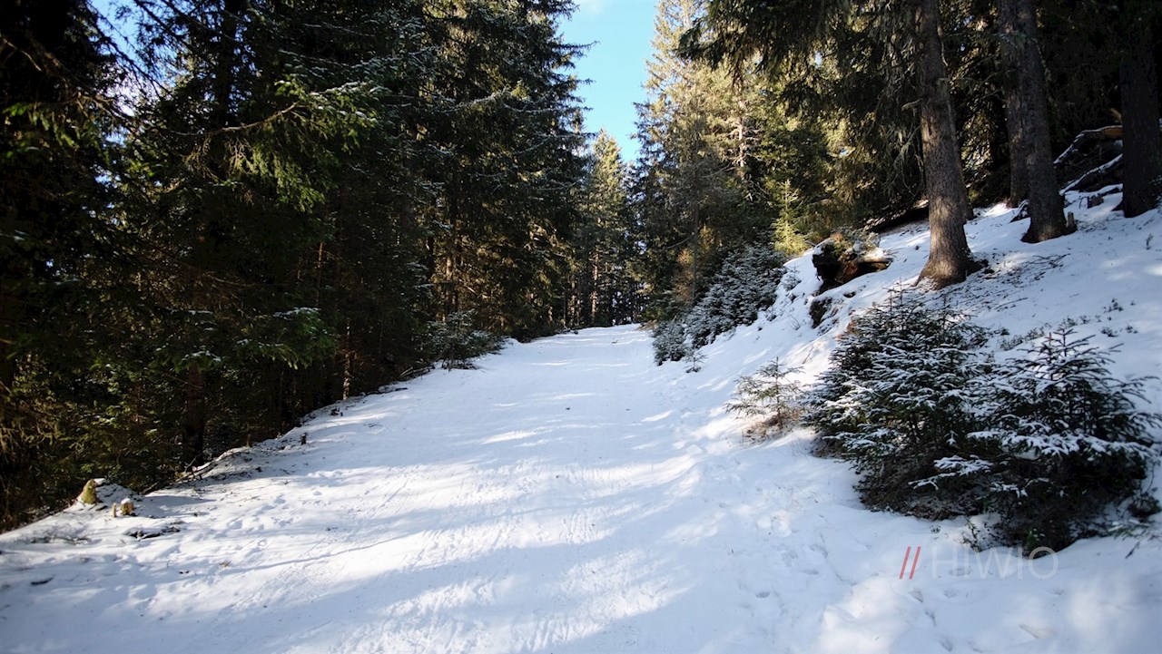 Am Wanderparkplatz schlägt man den anfangs noch breiten Wanderweg Nr. 31 in Richtung Lutterkopf ein, der wenig später in einen schmalen Steig übergeht. Er führt im steten Anstieg durch den winterlich verschneiten Nadelwald.