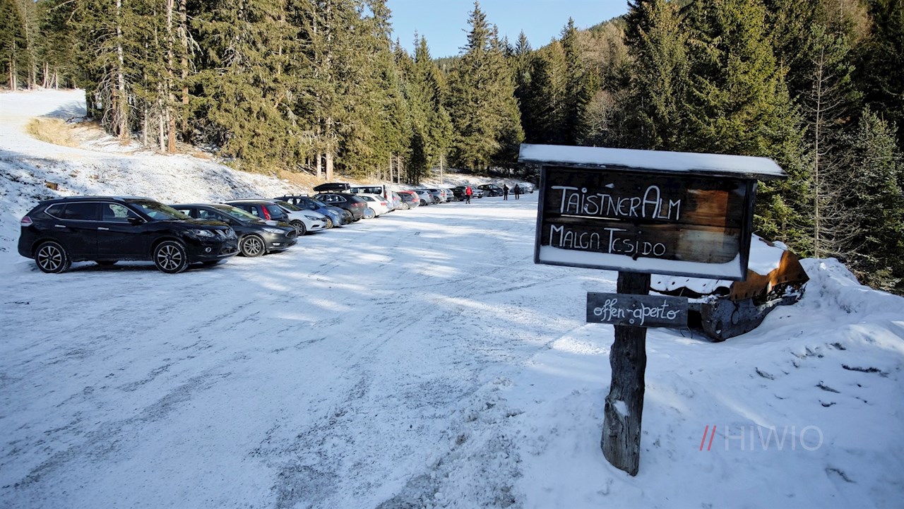 Die Winterwanderung auf den Lutterkopf nimmt am großen Wanderparkplatz oberhalb des Mudlerhofes ihren Anfang, den man über das Sonnendorf Taisten anfährt.