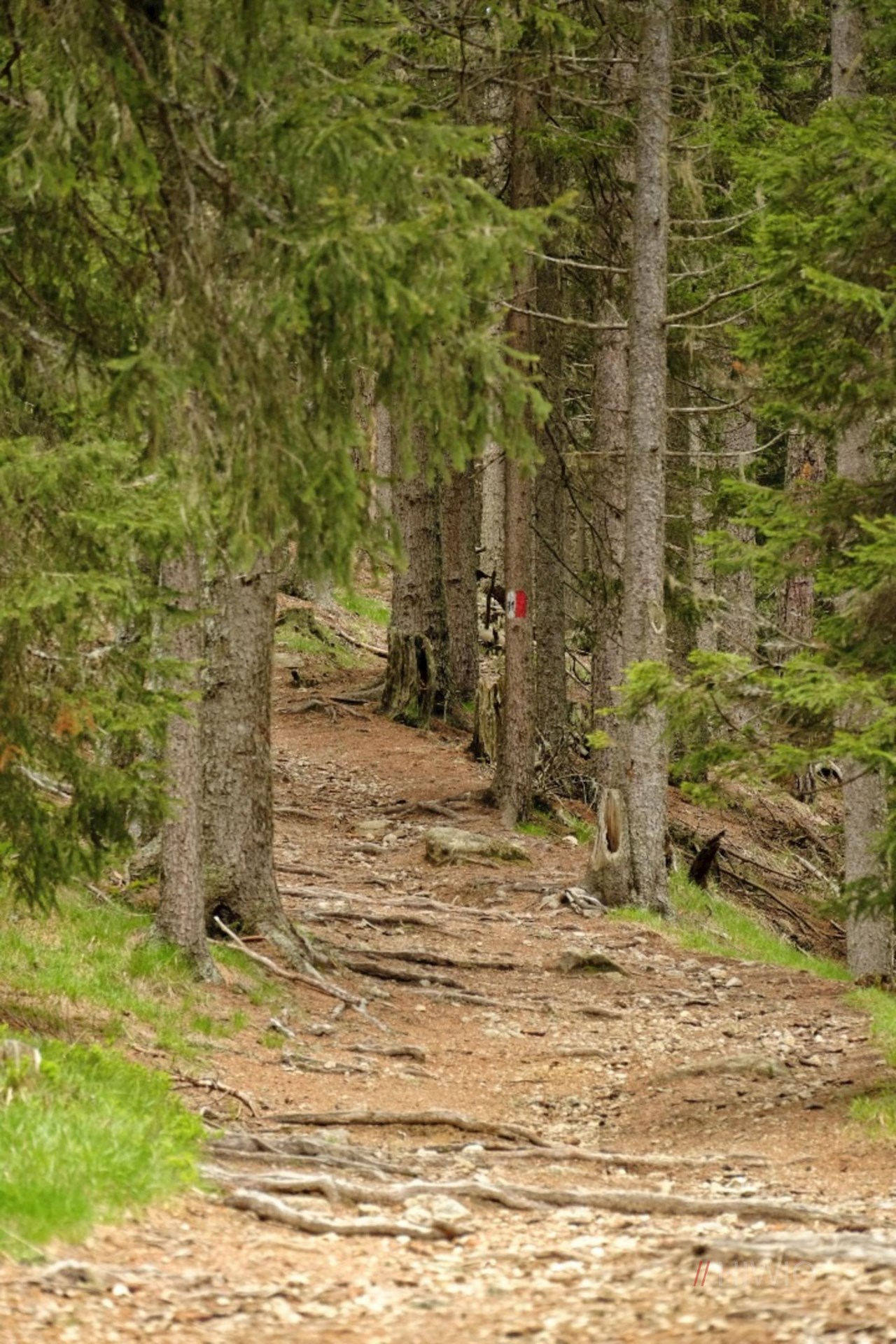 Hier folgt man dem anfangs breiten Wanderweg Nr. 31 in Richtung Lutterkopf, der im zunächst sanften, dann ziemlich steilen Anstieg durch einen harzduftenden Nadelwald führt.