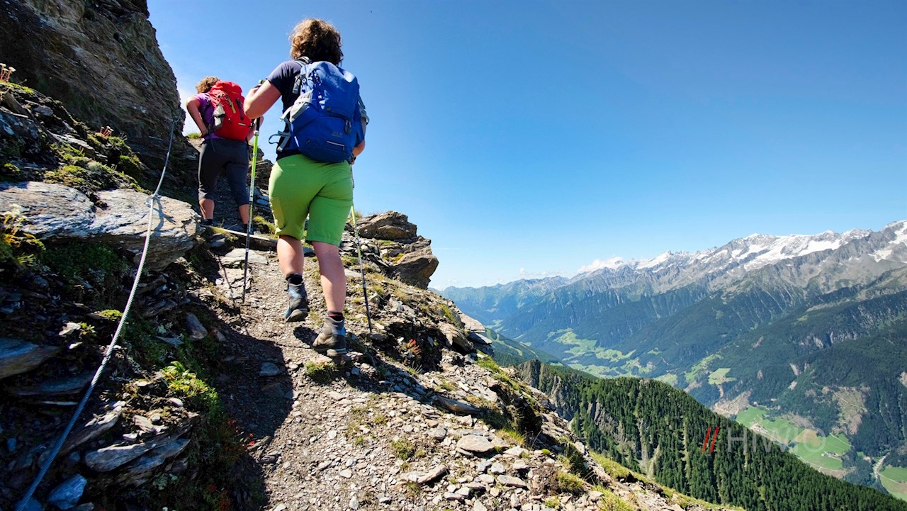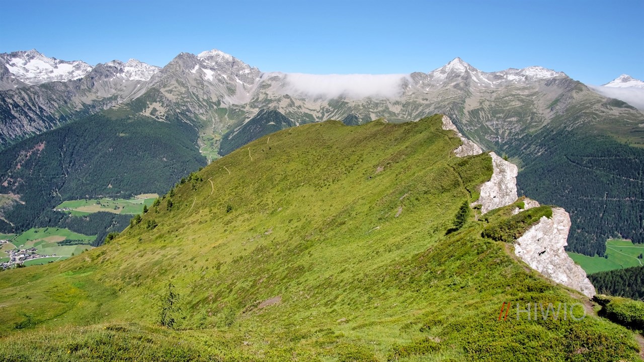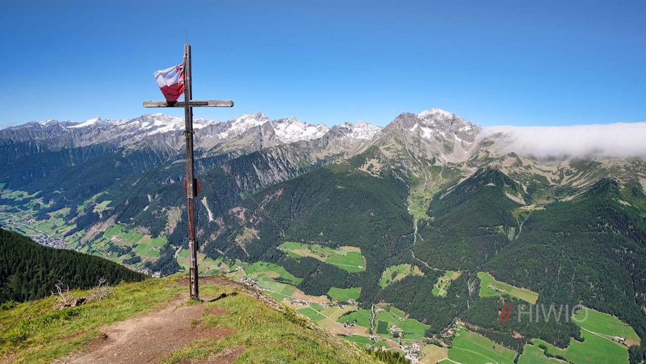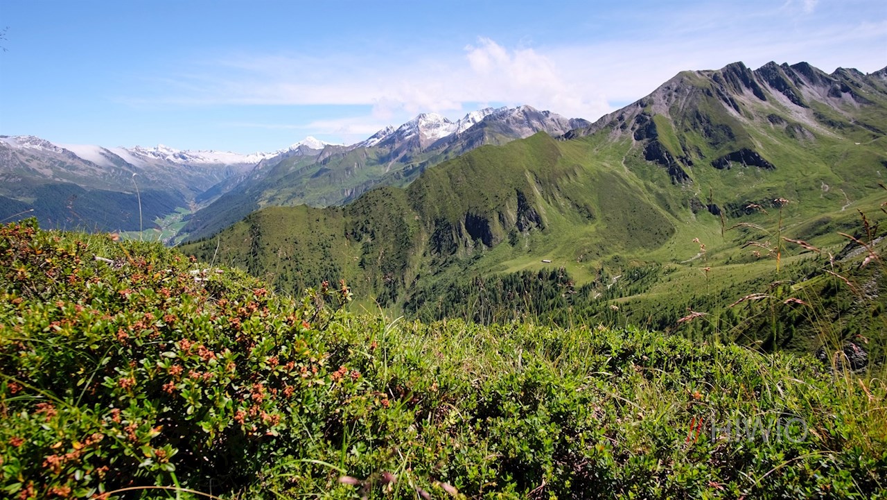 Hinter der Waldgrenze schlängelt er sich durch blumenreiche, recht steil abfallende Bergwiesen zum schlichten Gipfelkreuz des Lutterkopf hoch. Da er bis zum Gipfel mit Gras bewachsen ist, wird er im Volksmund auch „Graskopf“ genannt. Trotz seiner vergleichsweise recht geringen Höhe öffnet er einen atemberaubend schönen Ausblick auf das langgezogene Ahrntal und seine hochaufragende Bergwelt. Selbst die Birnlücke an der Grenze zu Salzburg und die daneben aufstrebende vergletscherte Dreiherrenspitze sind zu sehen. Vor uns erhebt sich indes die bläulich schimmernde Blauspitze.