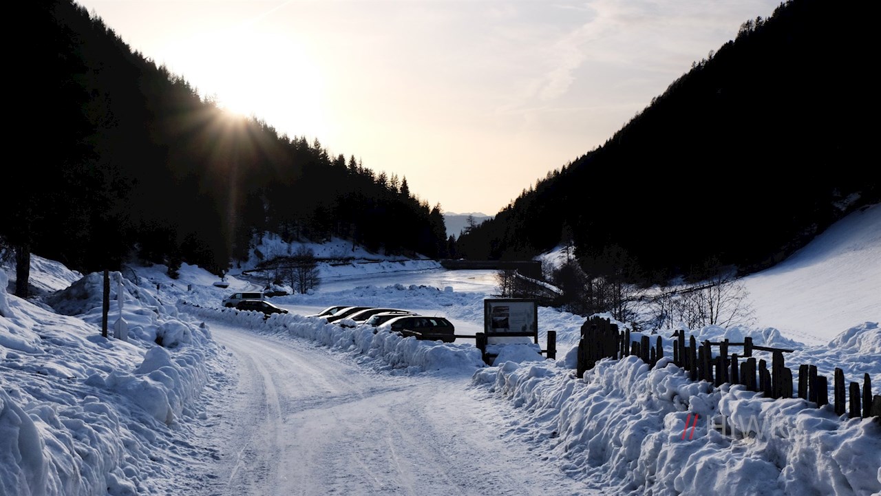 Die Winterwanderung zur Huber Alm nimmt am Wanderparkplatz im Mühlbachtal (Mühlbacher Talile) ihren Anfang, das man über Percha / Tesselberg oder über Uttenheim im Ahrntal anfahren kann.