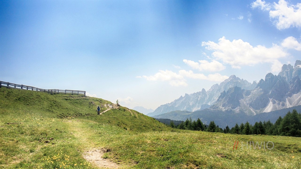 Auf drei schmalen Holzbrücken überqueren wir das Biotop und folgen danach dem breiten Schotterweg bis hinunter zum Kreuzbergpass. Dort folgen wir kurz der Hauptstraße, bevor wir wiederum rechts abbiegen und in einem abwechslungsreichen Mix aus Forstwegen und einfachen, aber dennoch spannenden Wurzeltrails bis nach Sexten/Moos zurückfahren. Ab Sexten fahren wir wieder auf dem Radweg zurück nach Innichen und von dort zurück zu unserem Ausgangspunkt in Toblach.