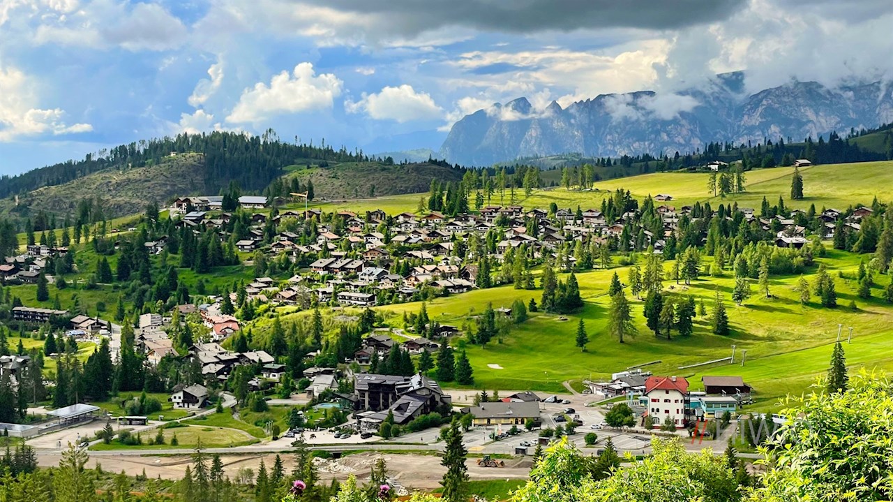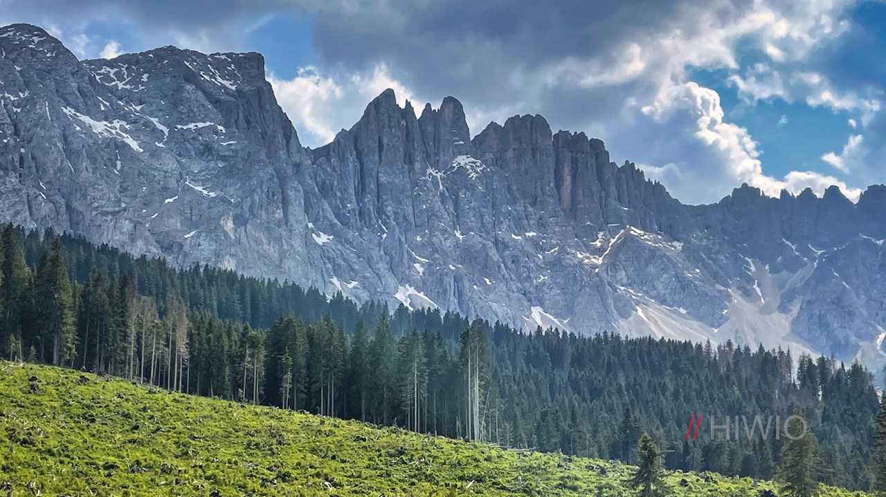 Er mündet wenig später in den Weg Nr. 13, der sich vor der verträumten Kulisse des Latemar auf der einen und des Rosengarten auf der anderen Seite in Richtung Latemarwiesen schlängelt.